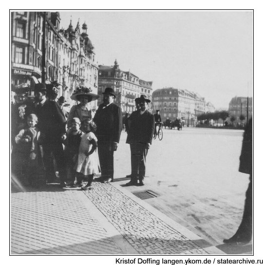 (A1) (#) Zarewitsch Alexei, "Leibmatrose" Derewenko, rechts Erbgroßherzog Georg Donatus. Man beachte die retuschierten Passanten links