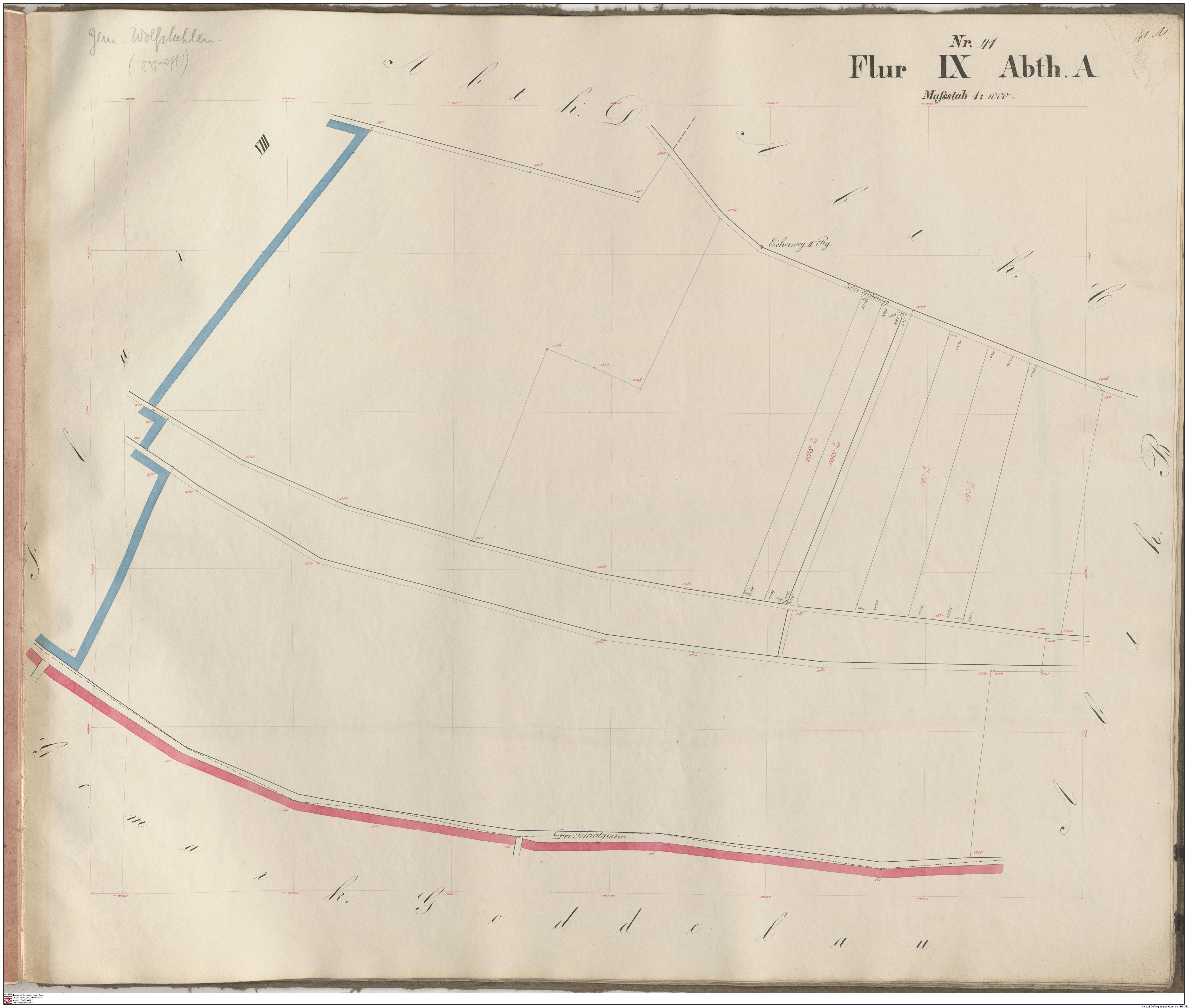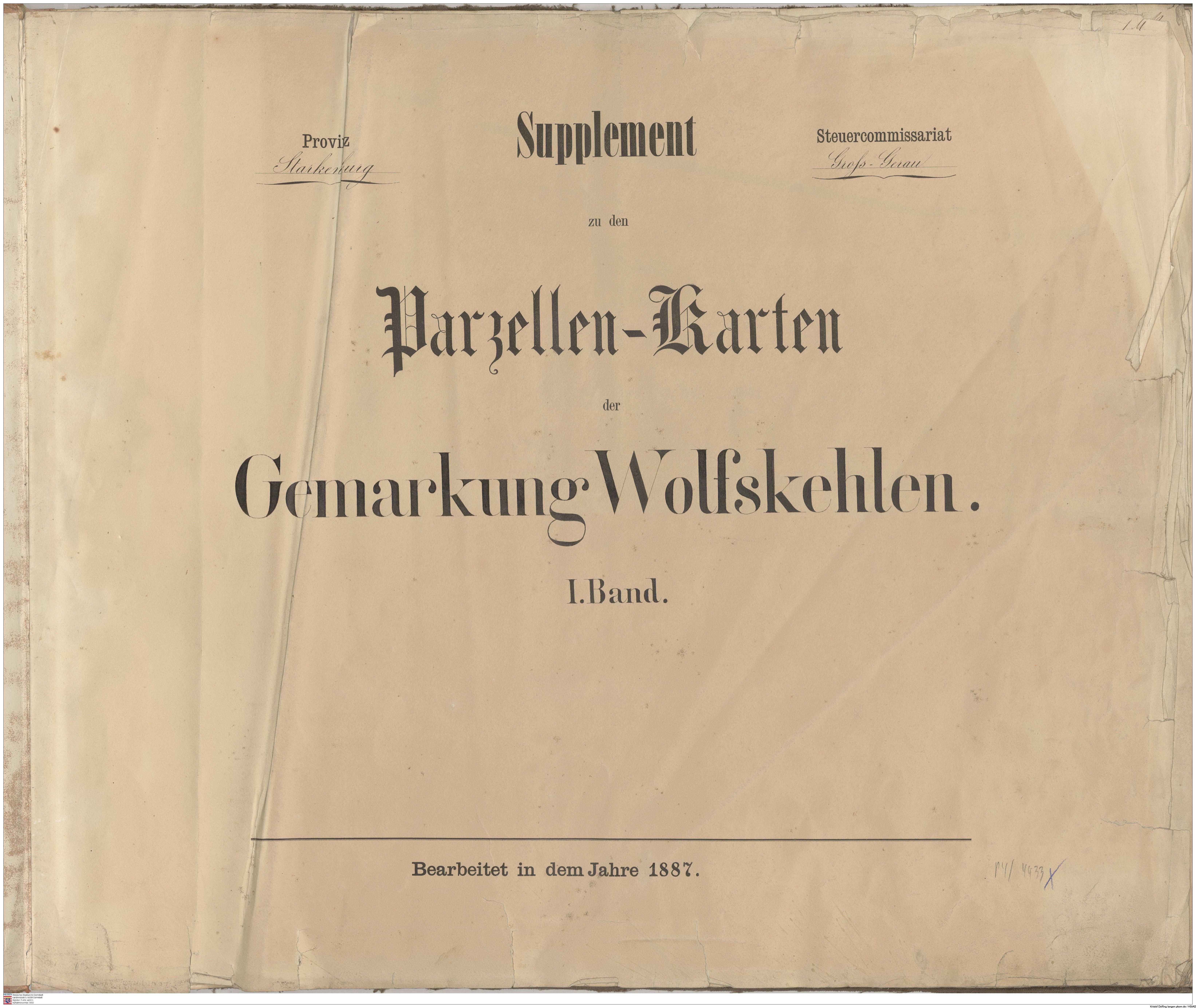(#) HStAD, P 4, 4433 X: Supplement der Parzellenkarten der Gemarkung Wolfskehlen 1887 (Band 1)