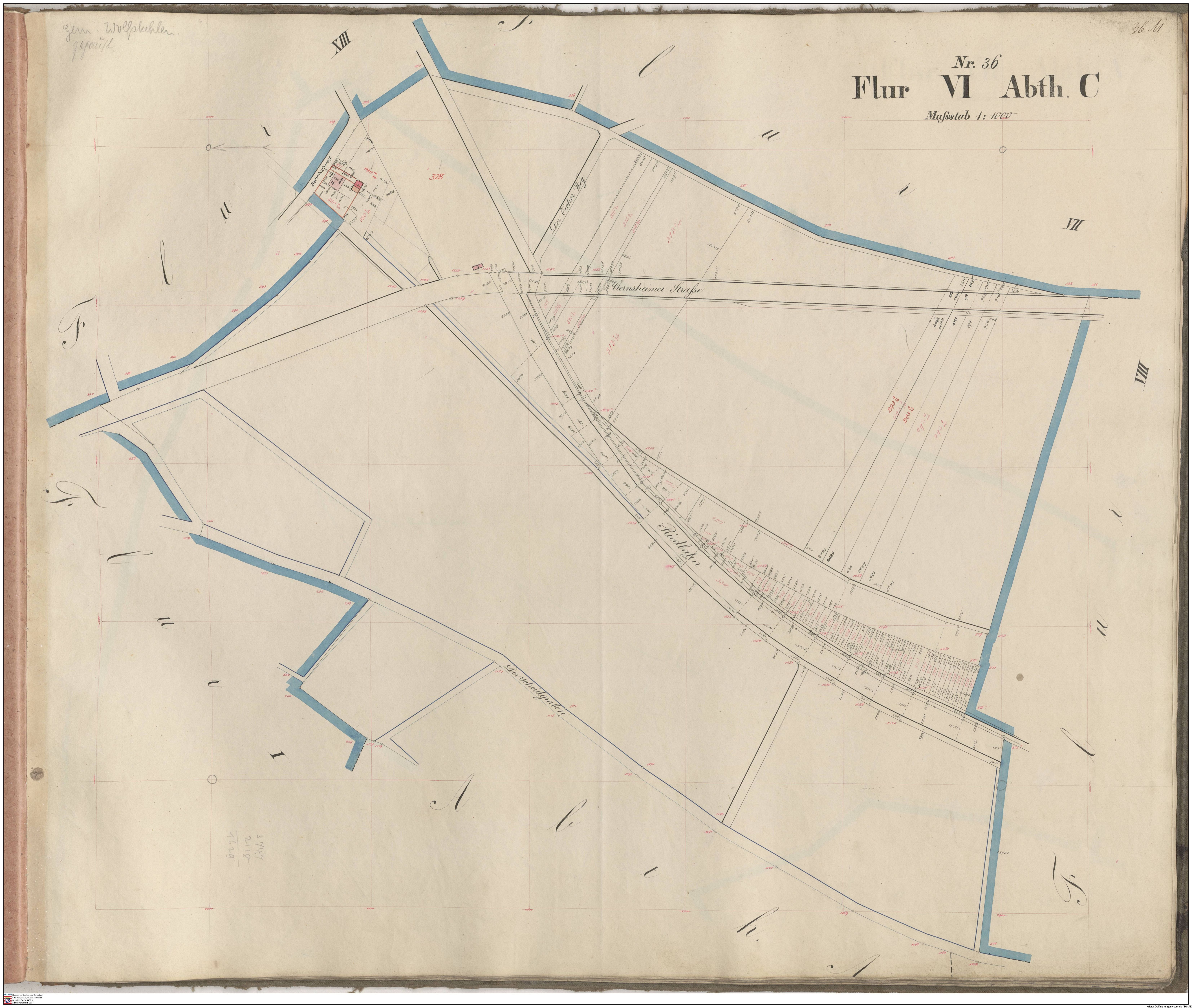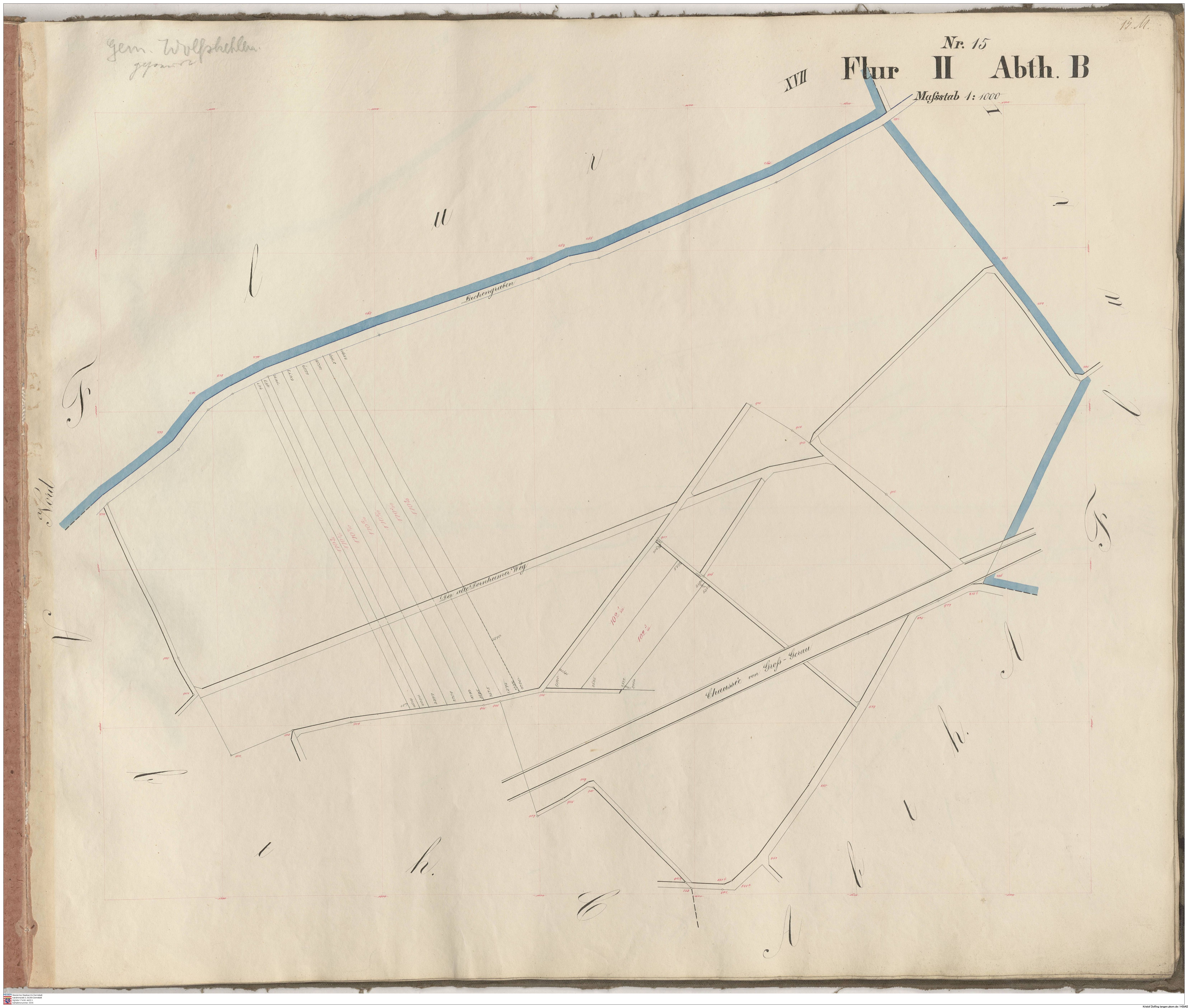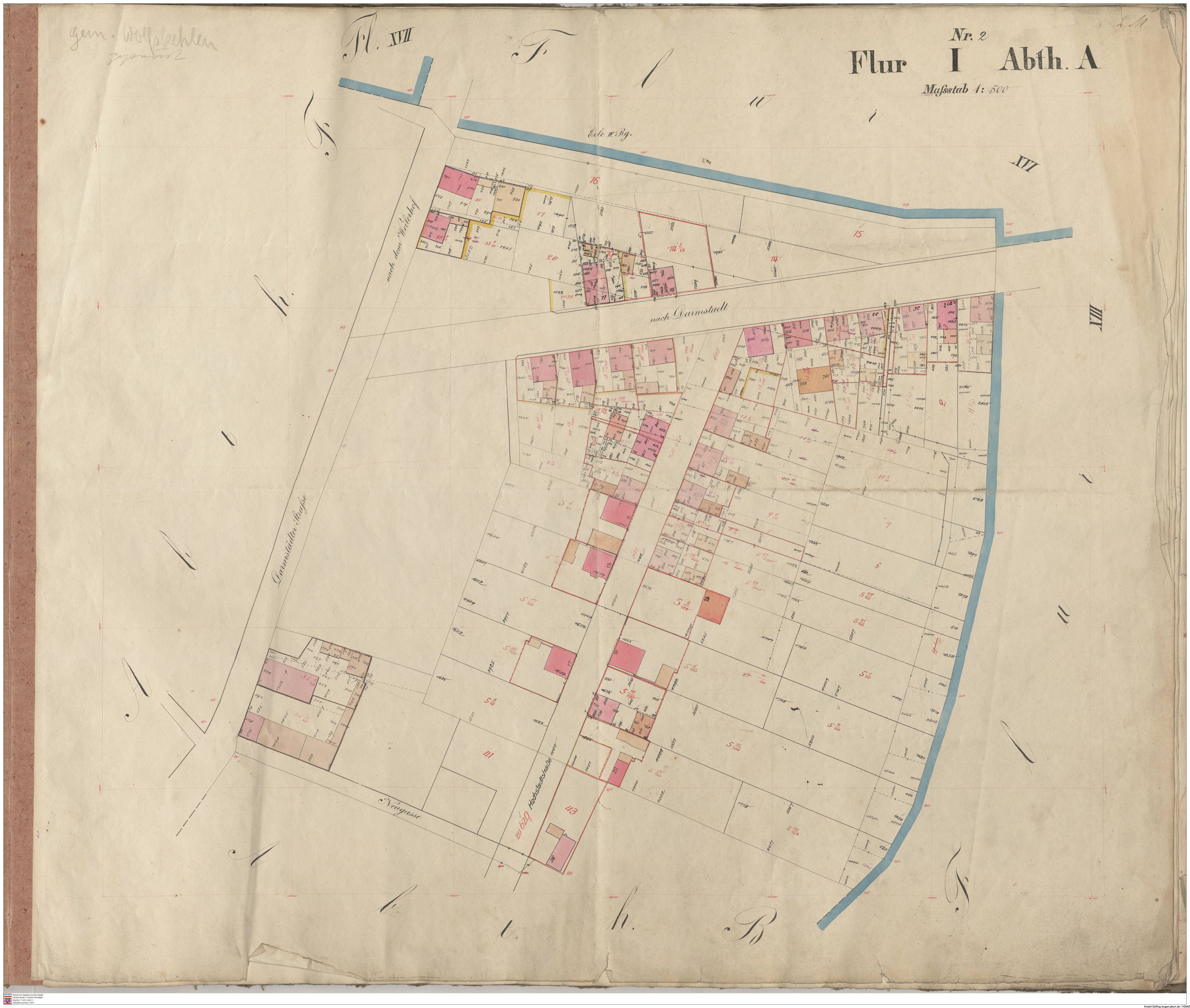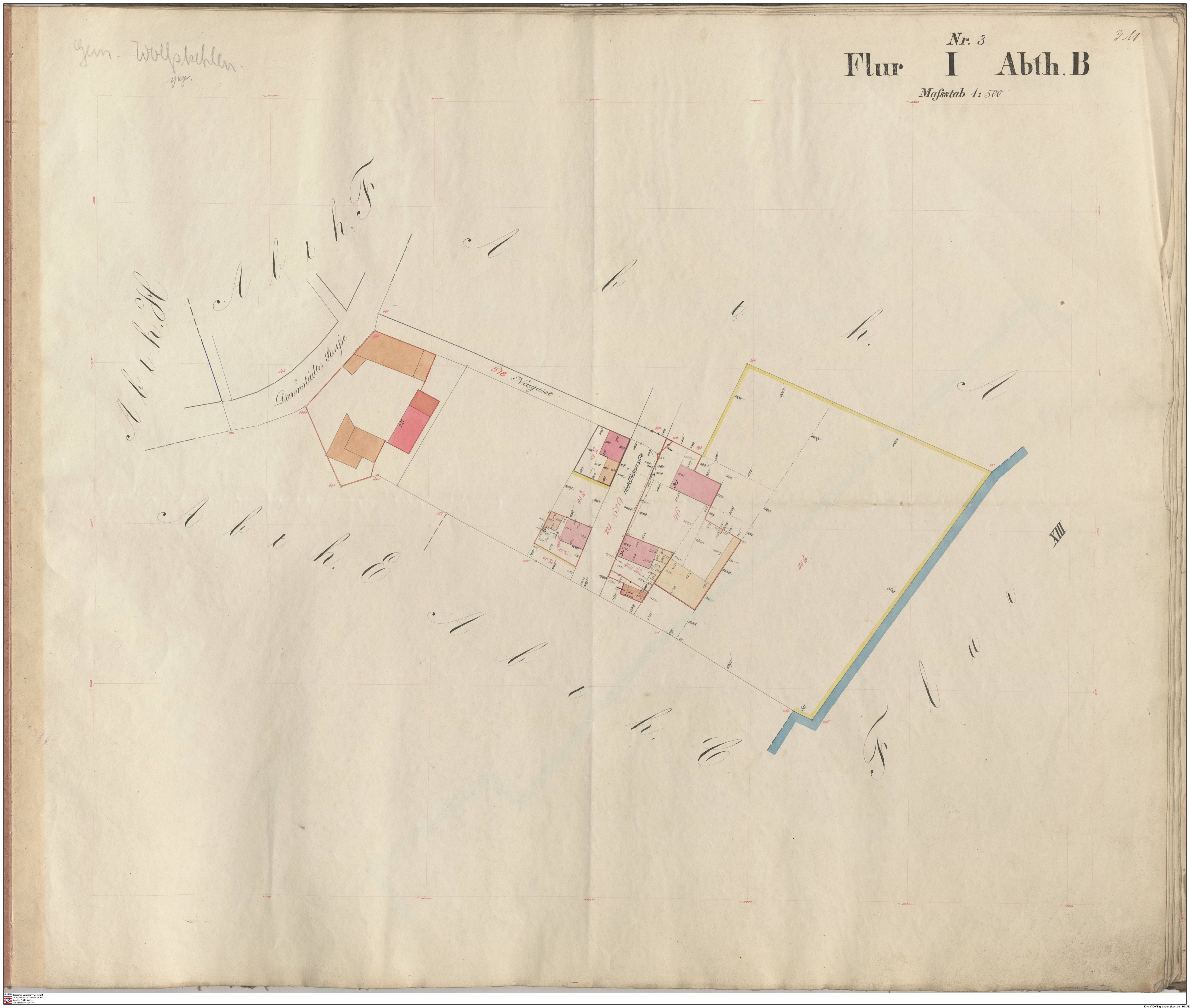 HStAD P 4 Nr. 3631: Parzellenkarten der Gemarkung Gross-Gerau 1852-1859, Flur 2, Abt B bis Flur 6 Abt. B
