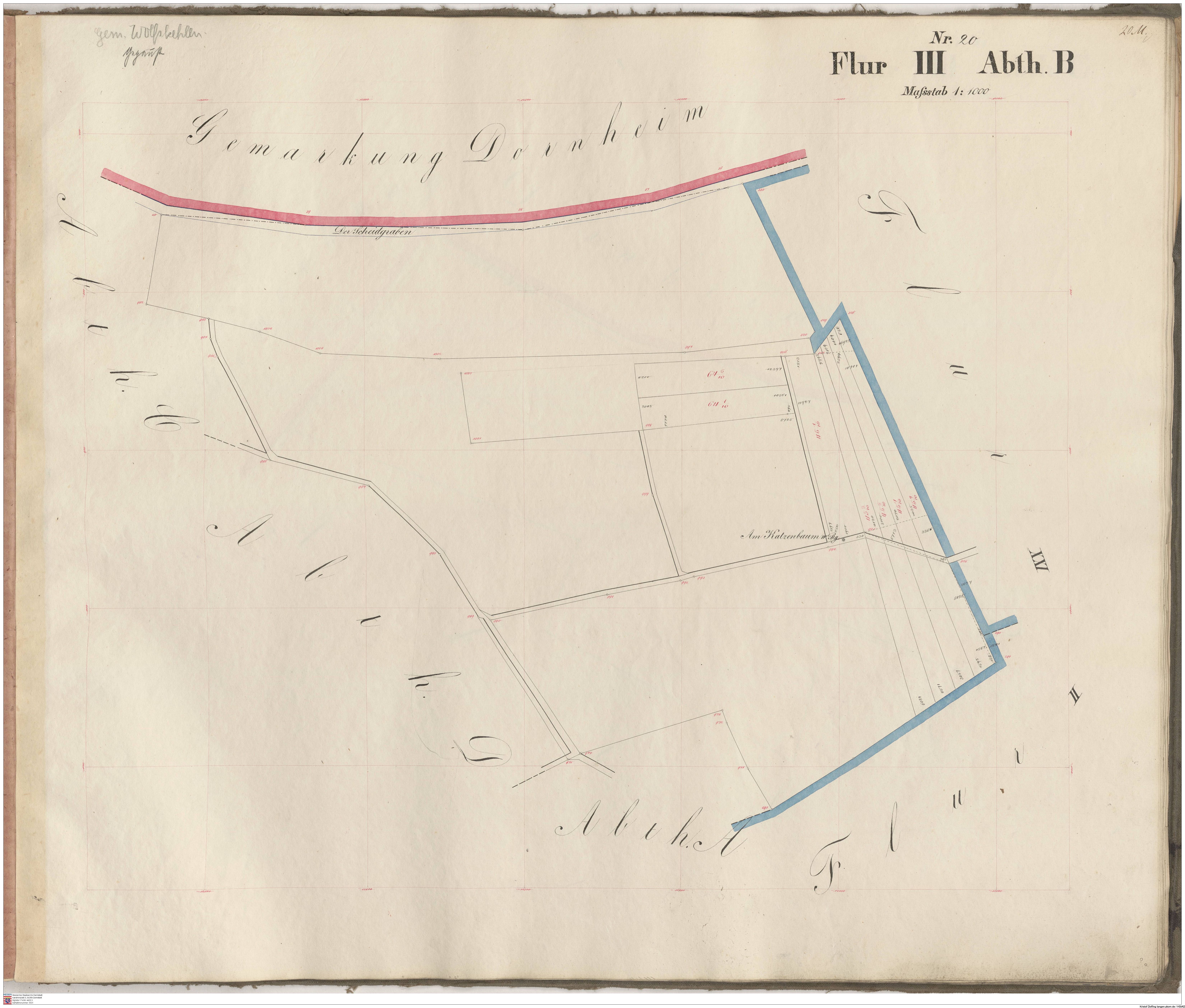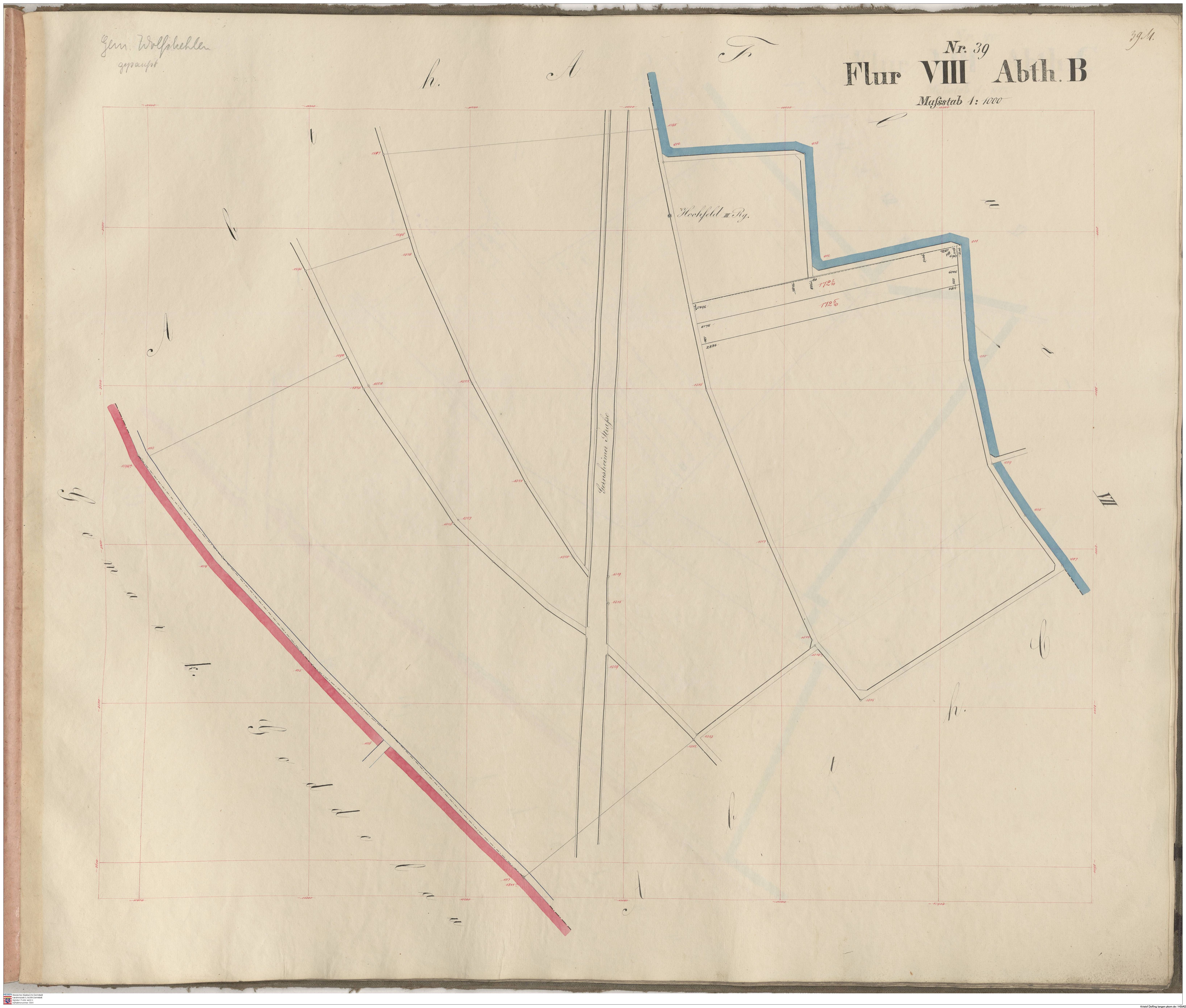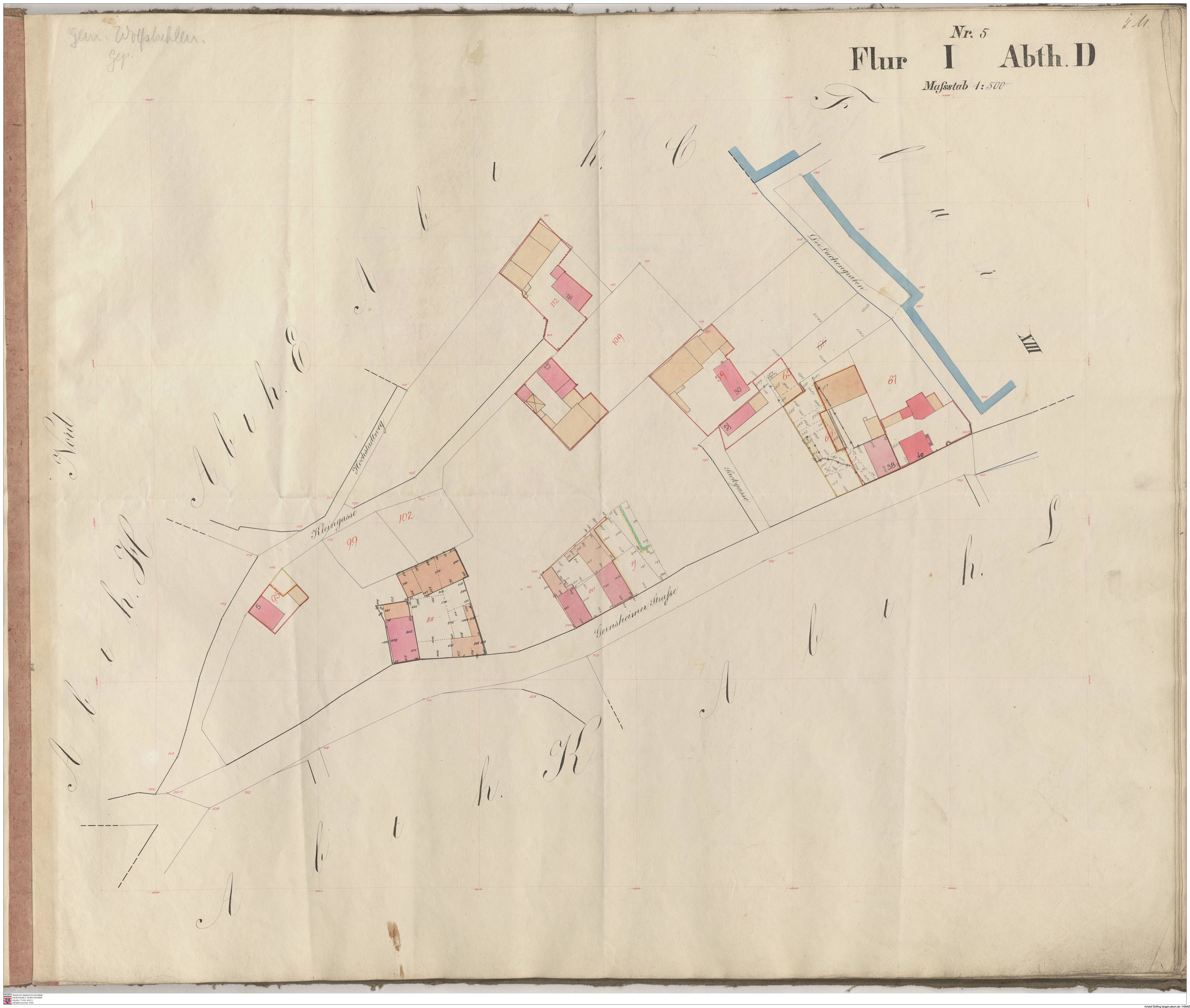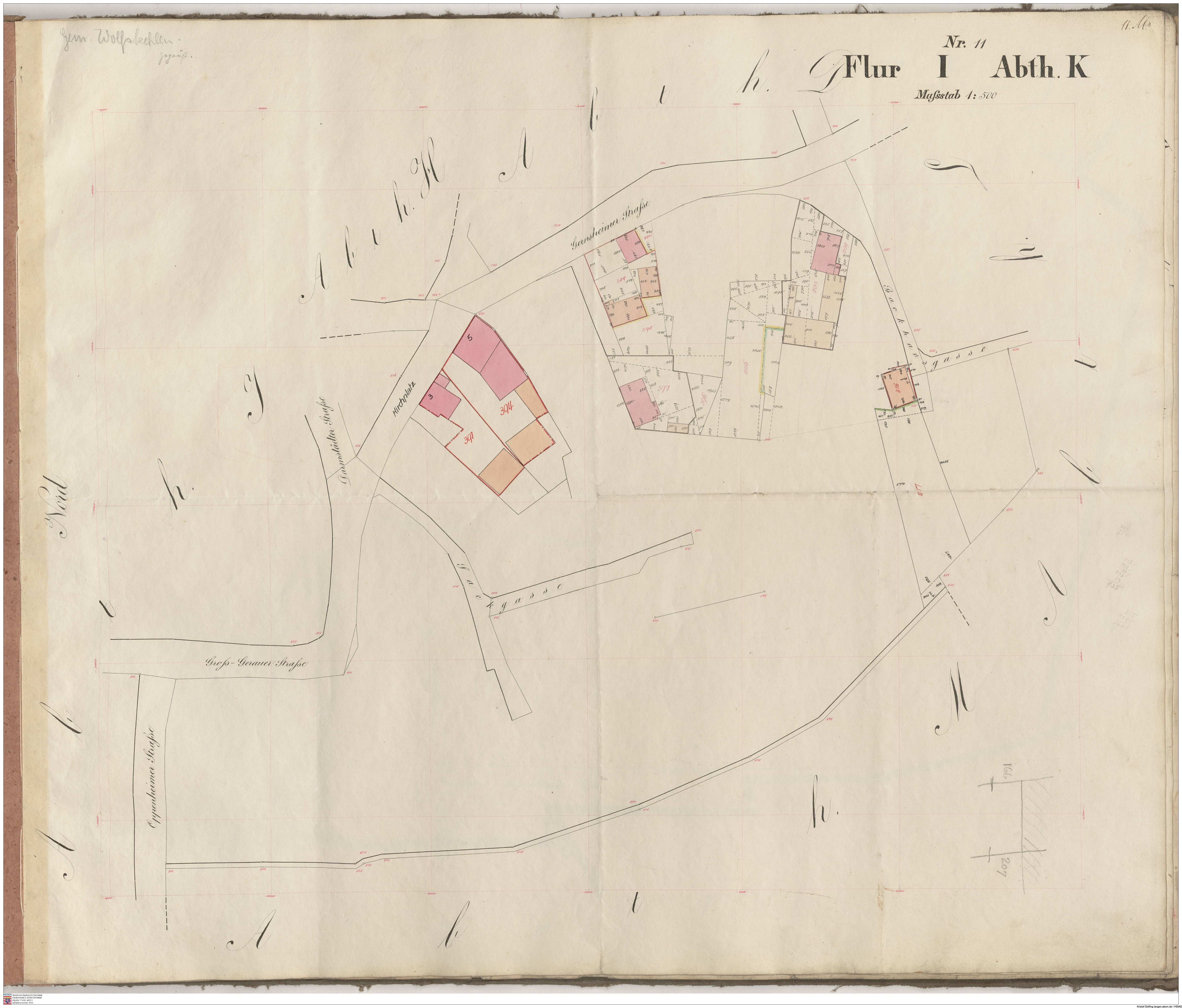 HStAD P 4 Nr. 3631: Parzellenkarten der Gemarkung Gross-Gerau 1852-1859, Flur 2, Abt B bis Flur 6 Abt. B