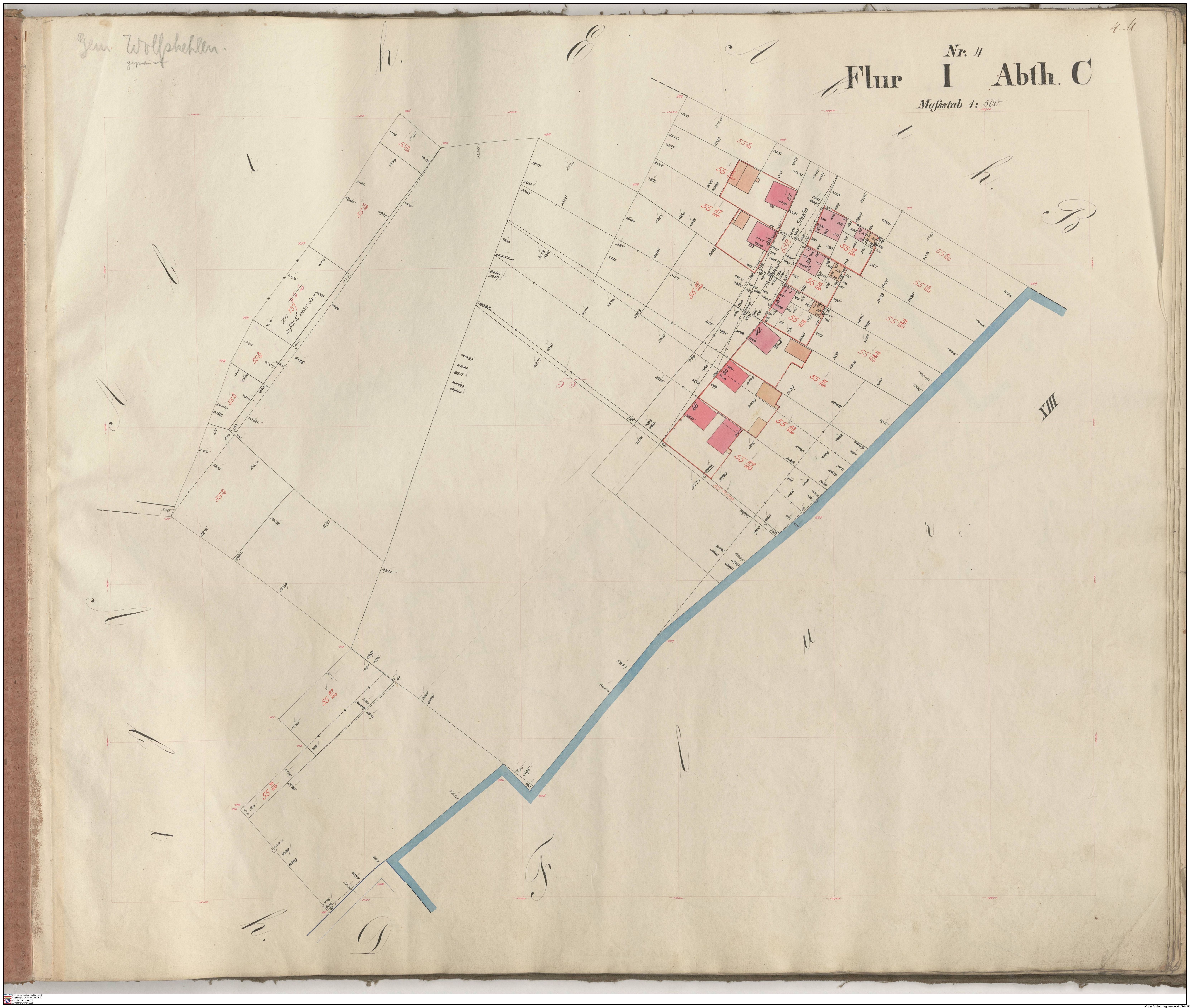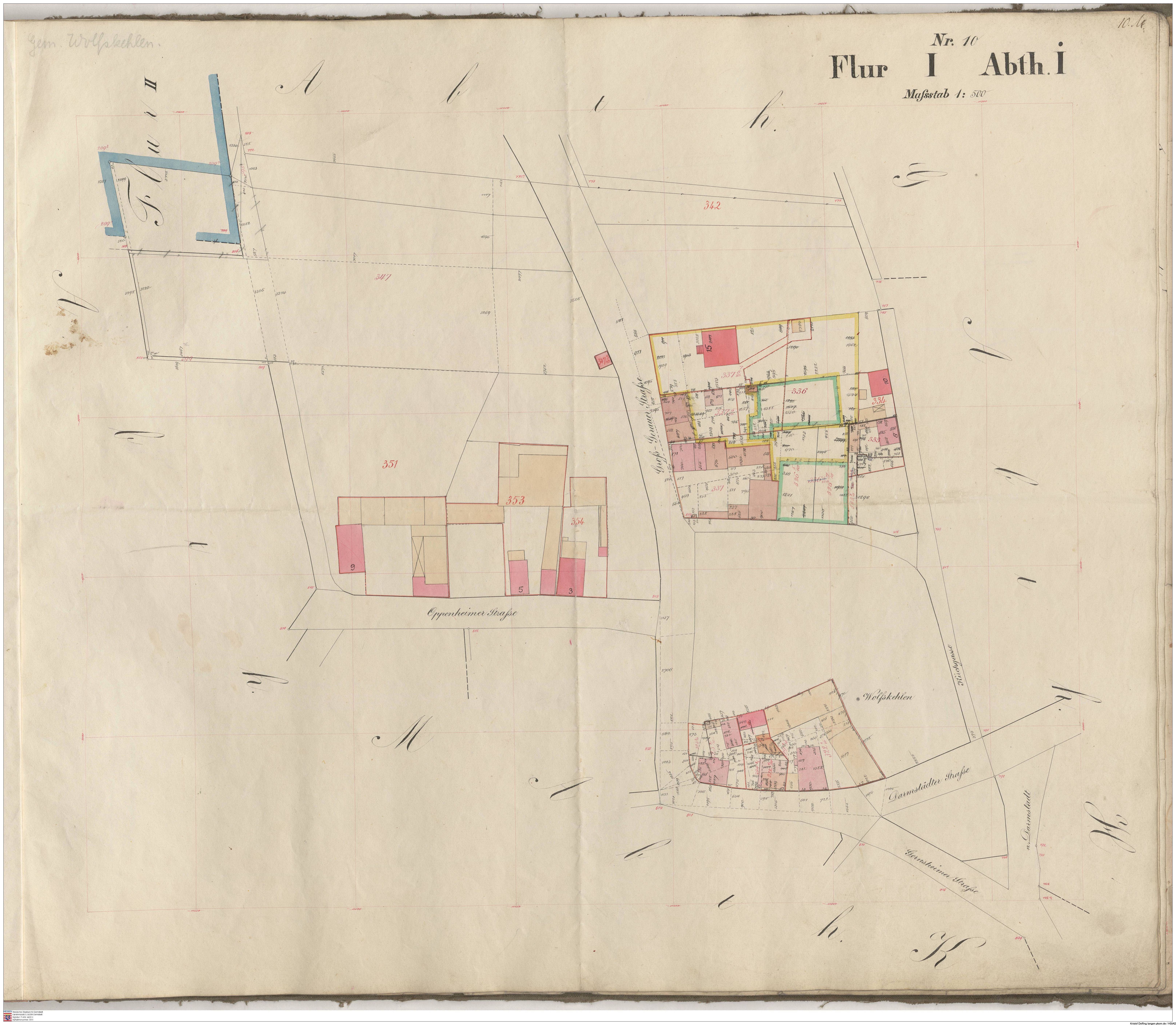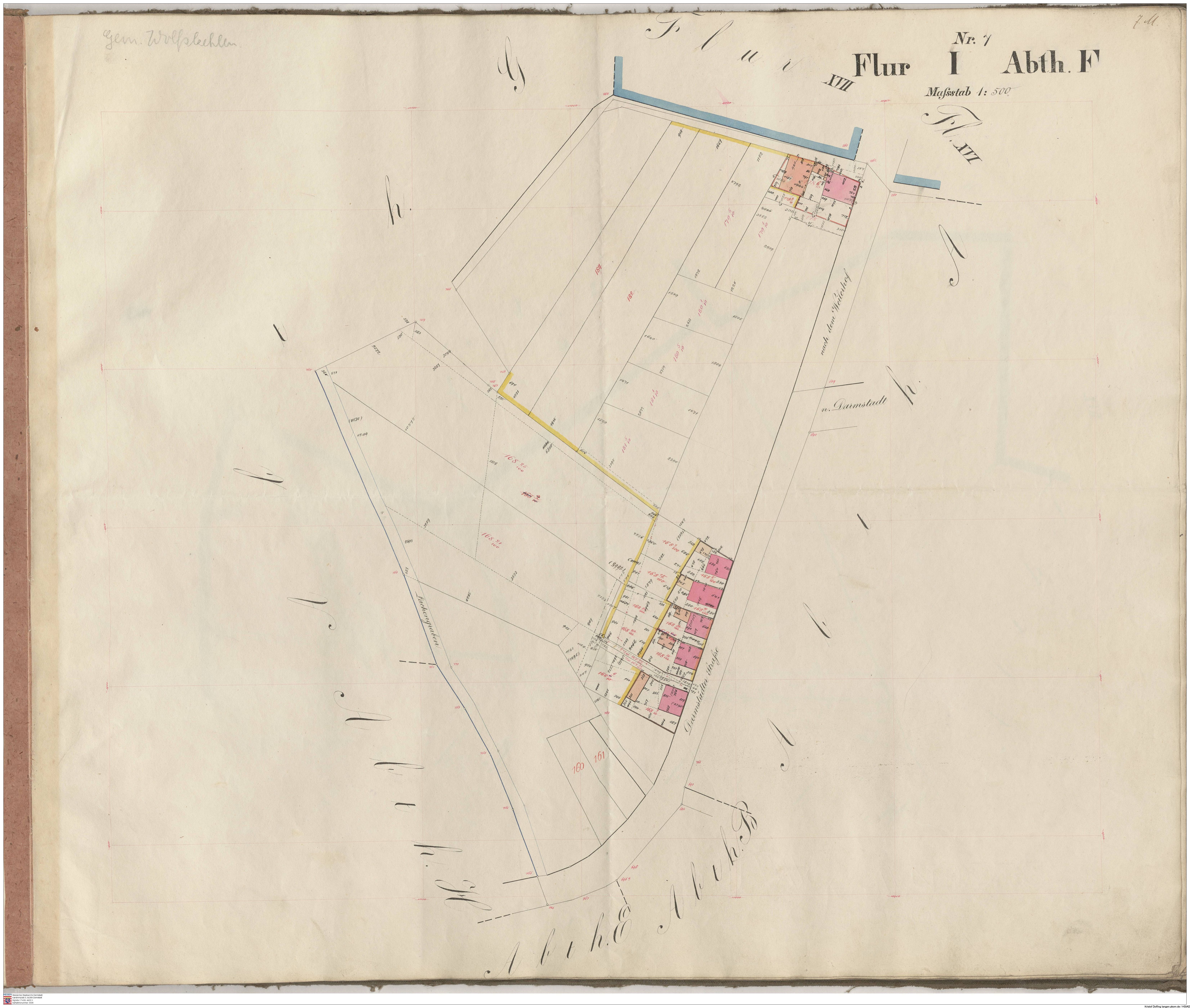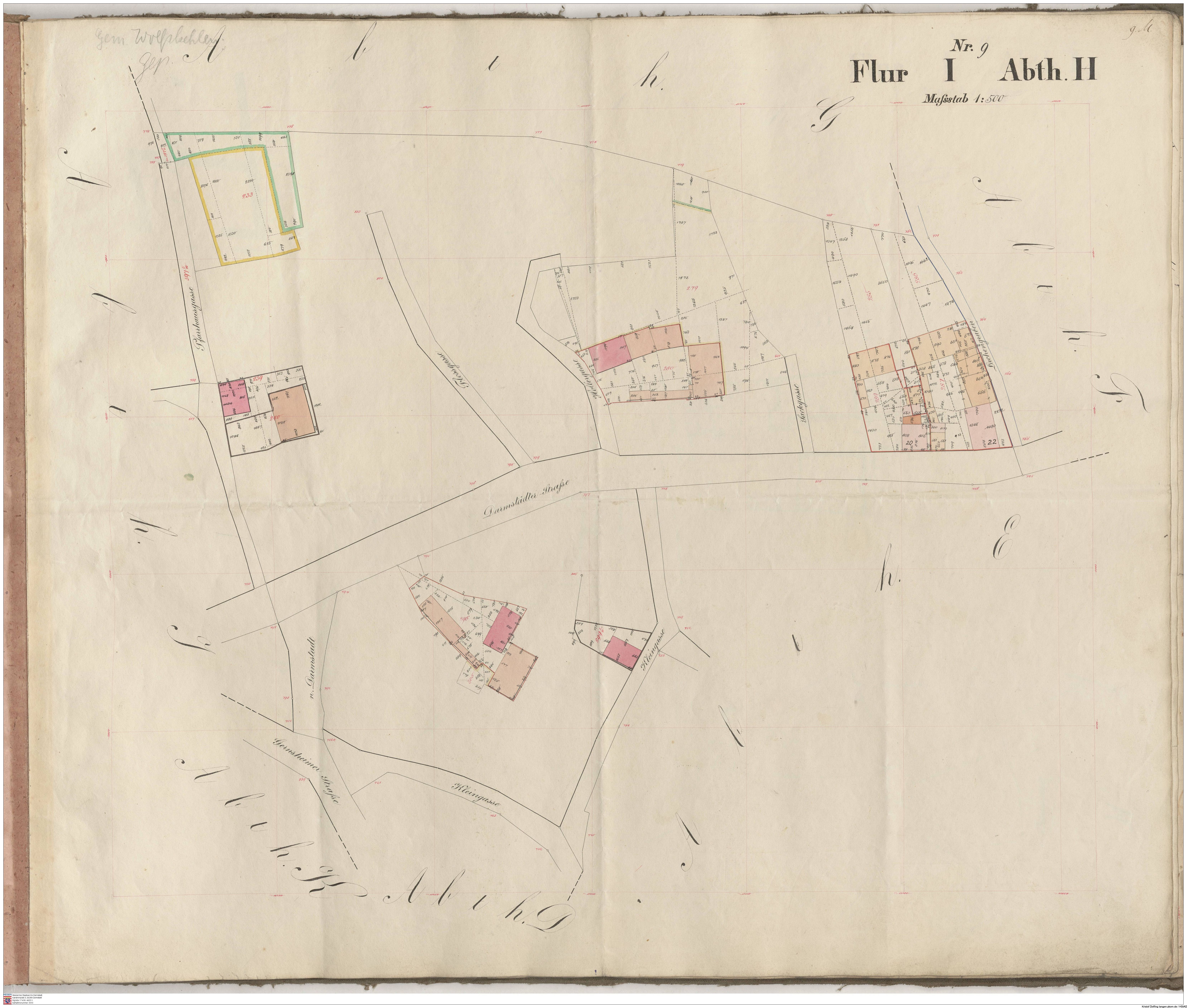 HStAD P 4 Nr. 3632: Parzellenkarten der Gemarkung Gross-Gerau 1852-1859, Flur 7, Abt A bis Flur 15 Abt. D