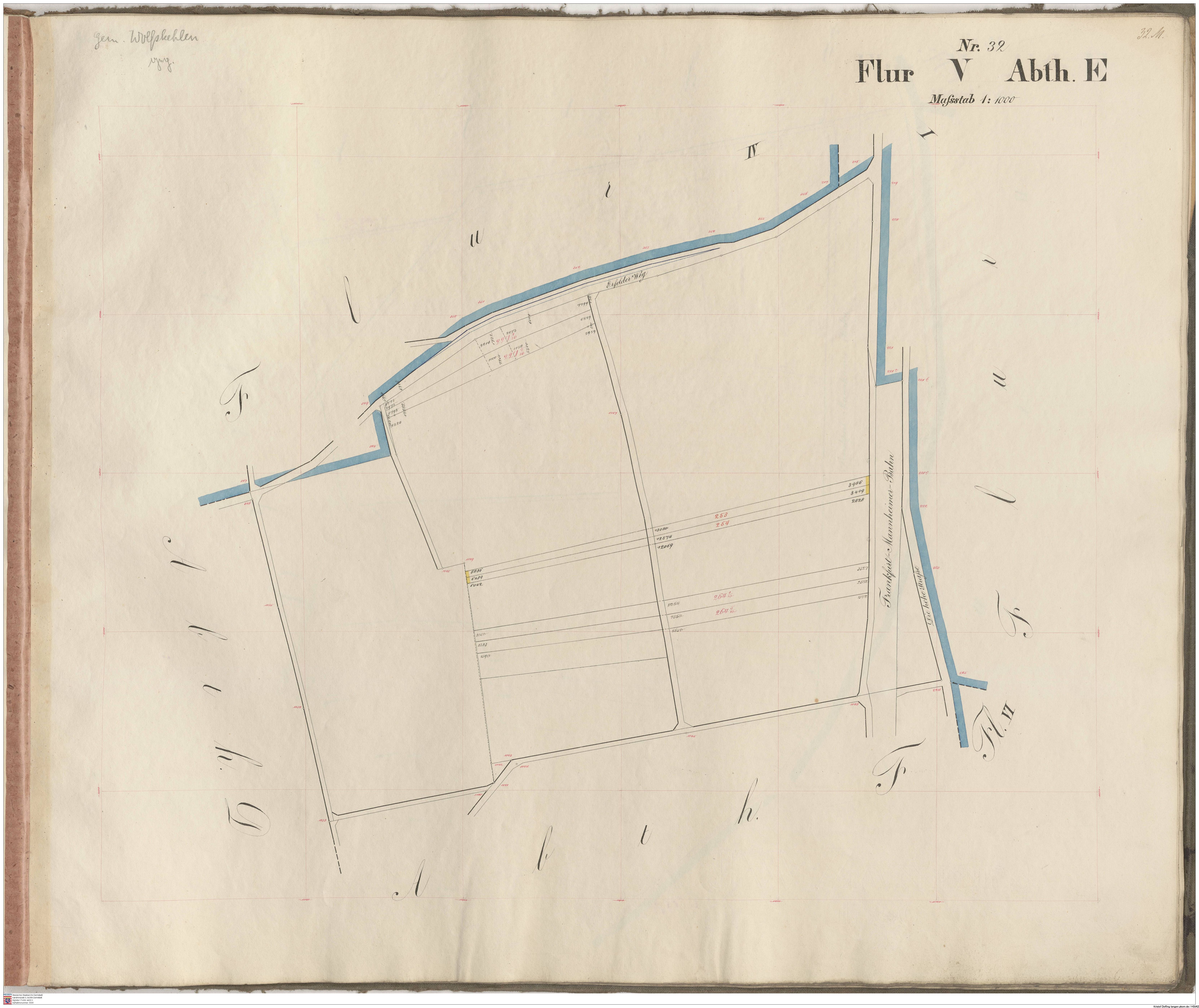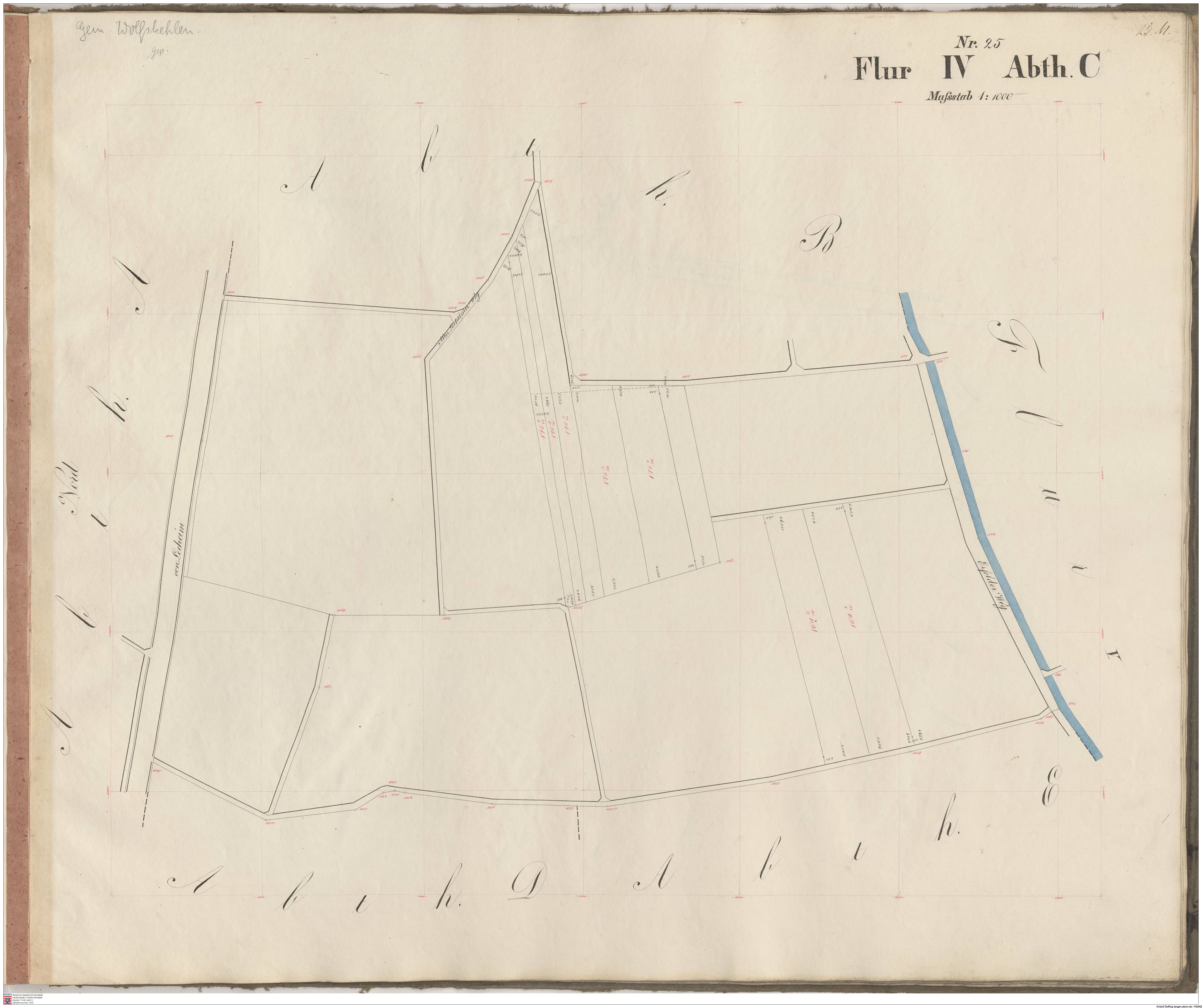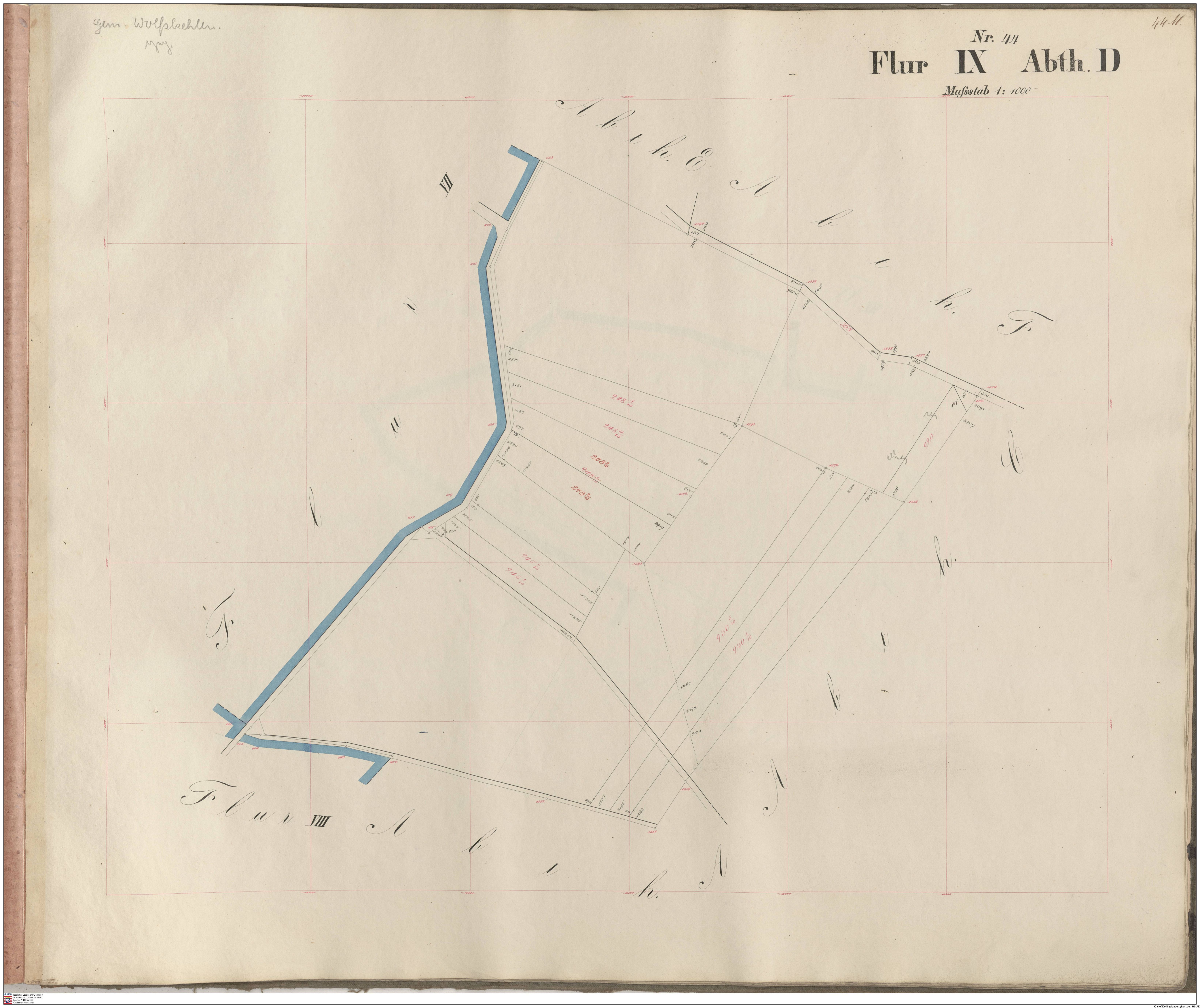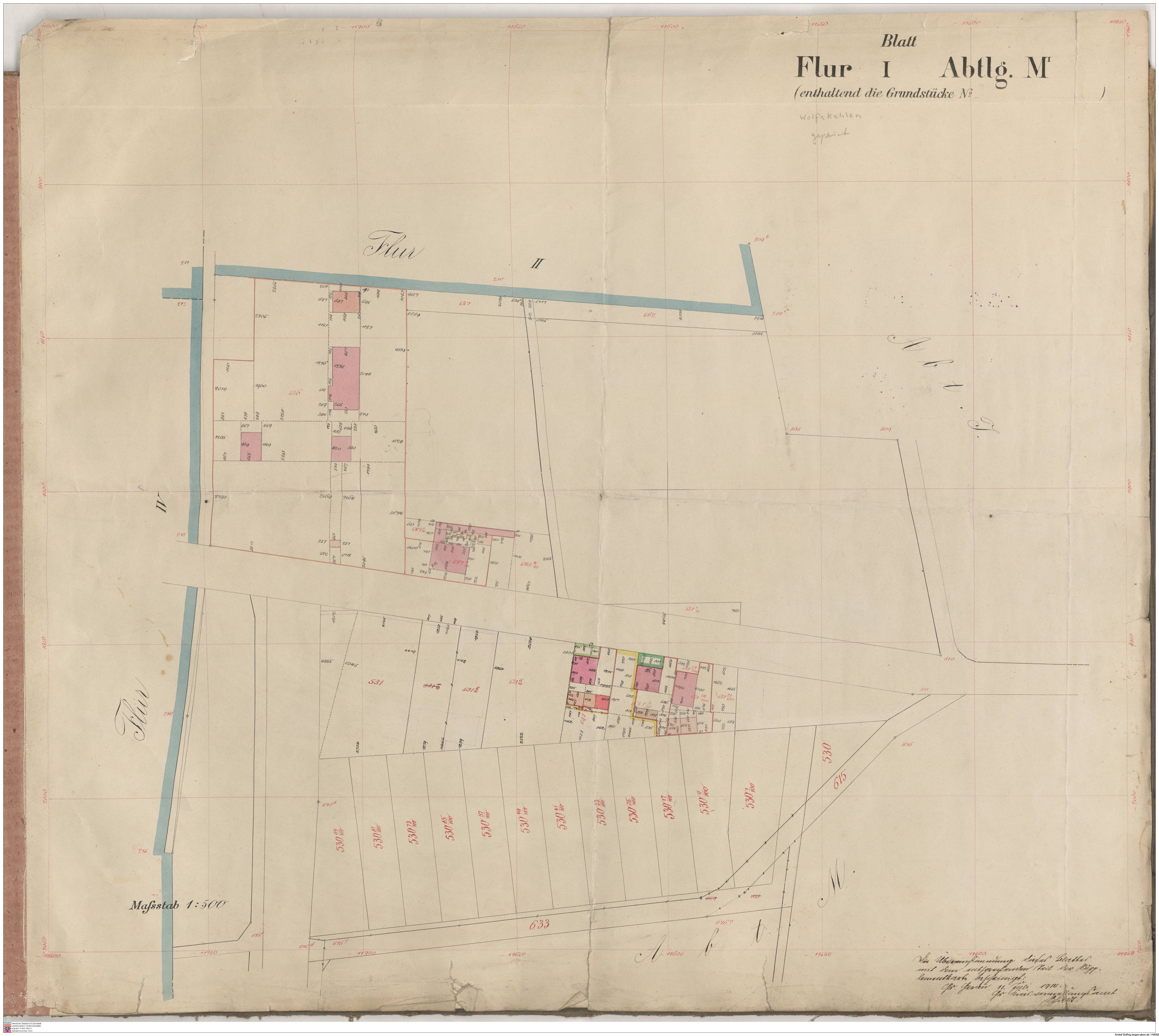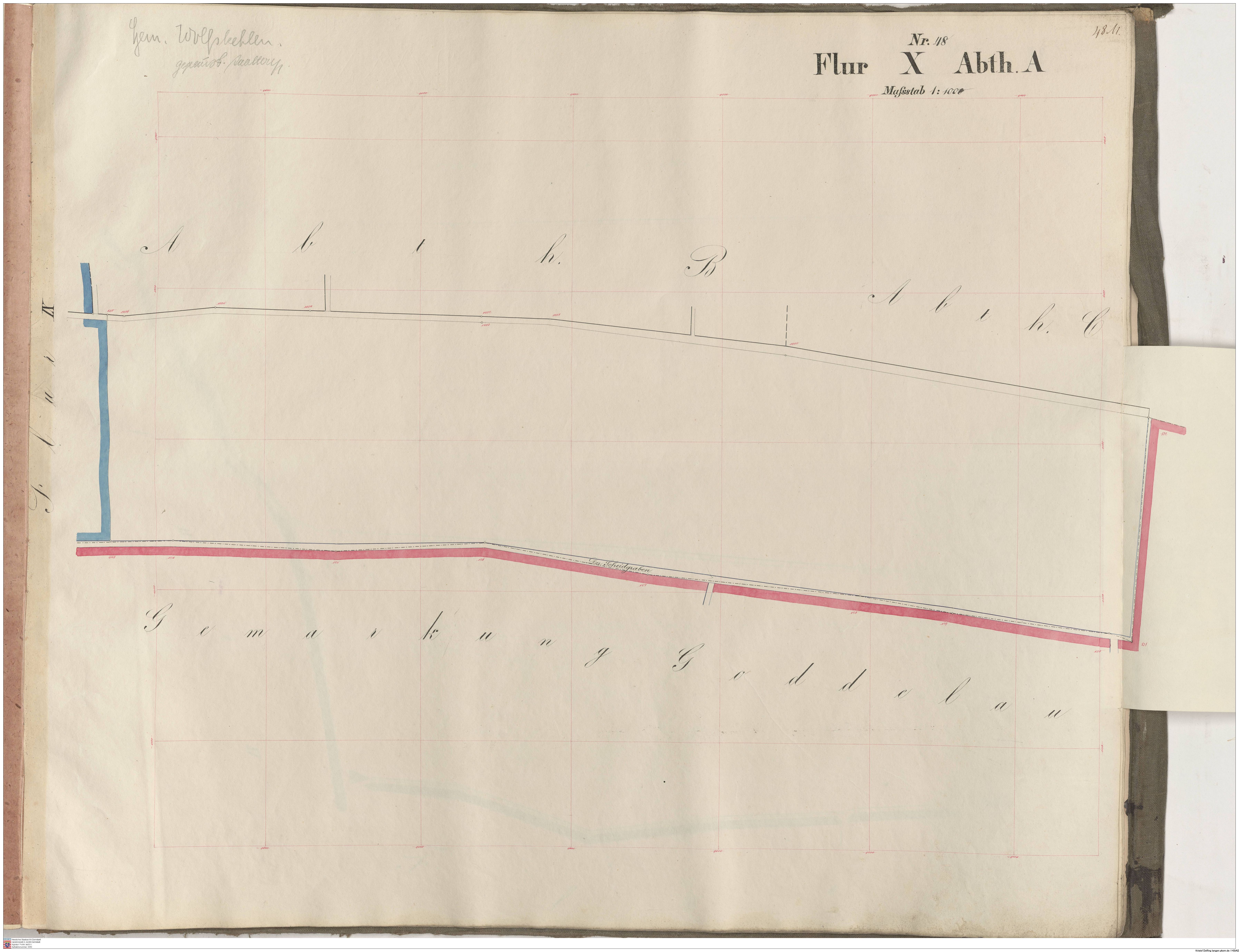 HStAD P 4 Nr. 3632: Parzellenkarten der Gemarkung Gross-Gerau 1852-1859, Flur 7, Abt A bis Flur 15 Abt. D