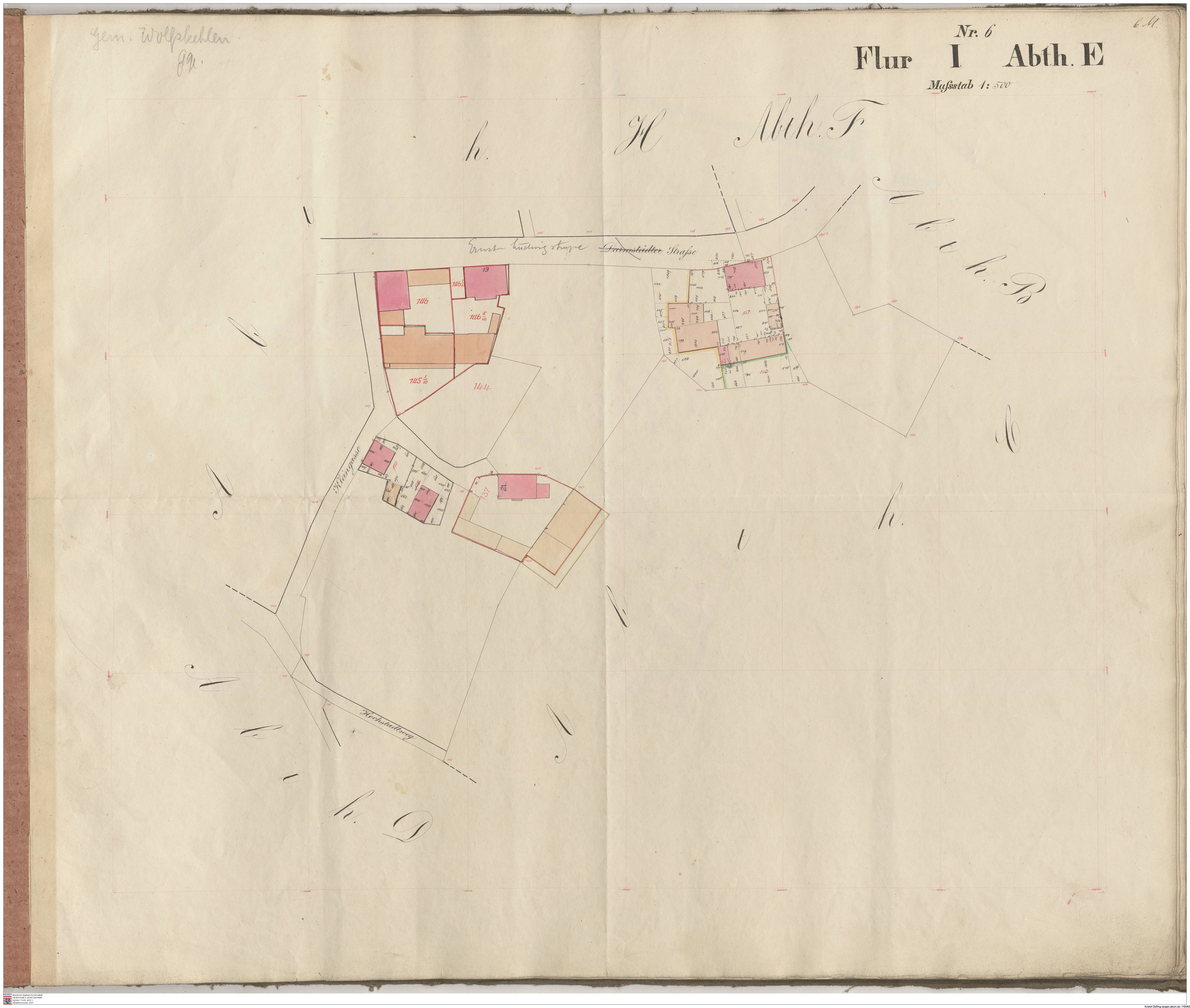 (#) HStAD, P 4, 4434 X: Supplement der Parzellenkarten der Gemarkung Wolfskehlen 1887 (Band 2)