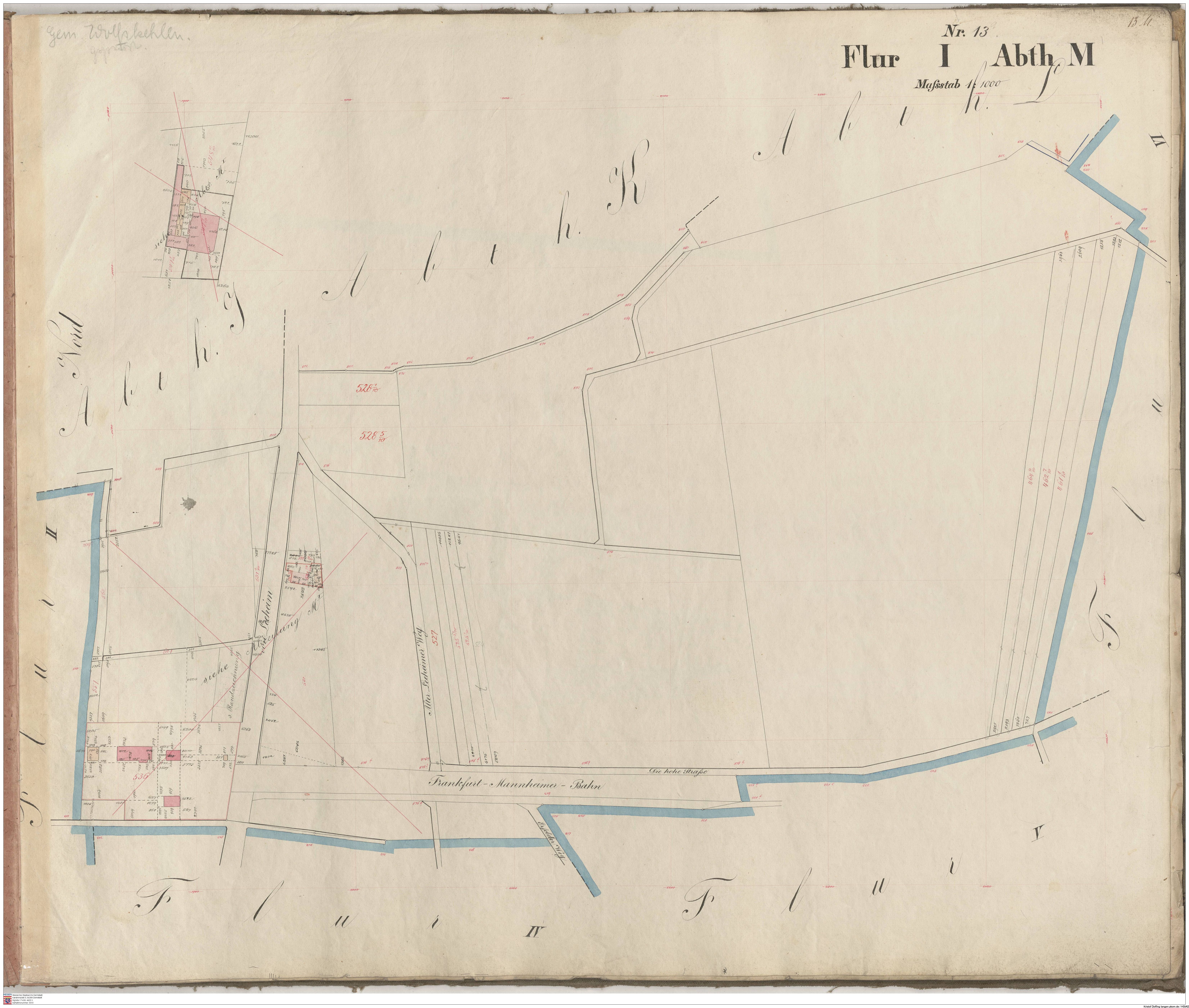 HStAD, P 4, 3699 Parzellenkarten der Gemarkung Rüsselsheim (nur Flur 1)