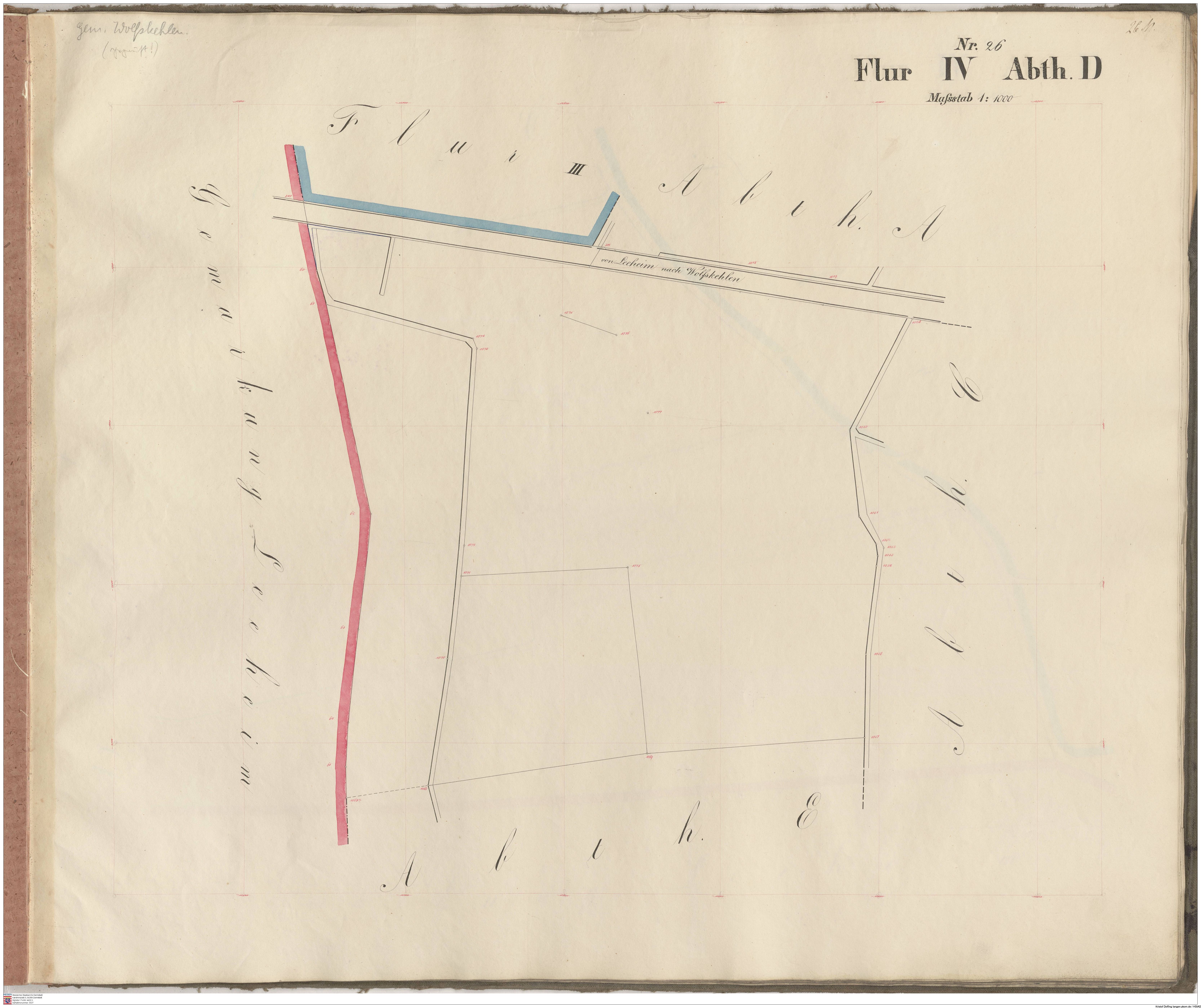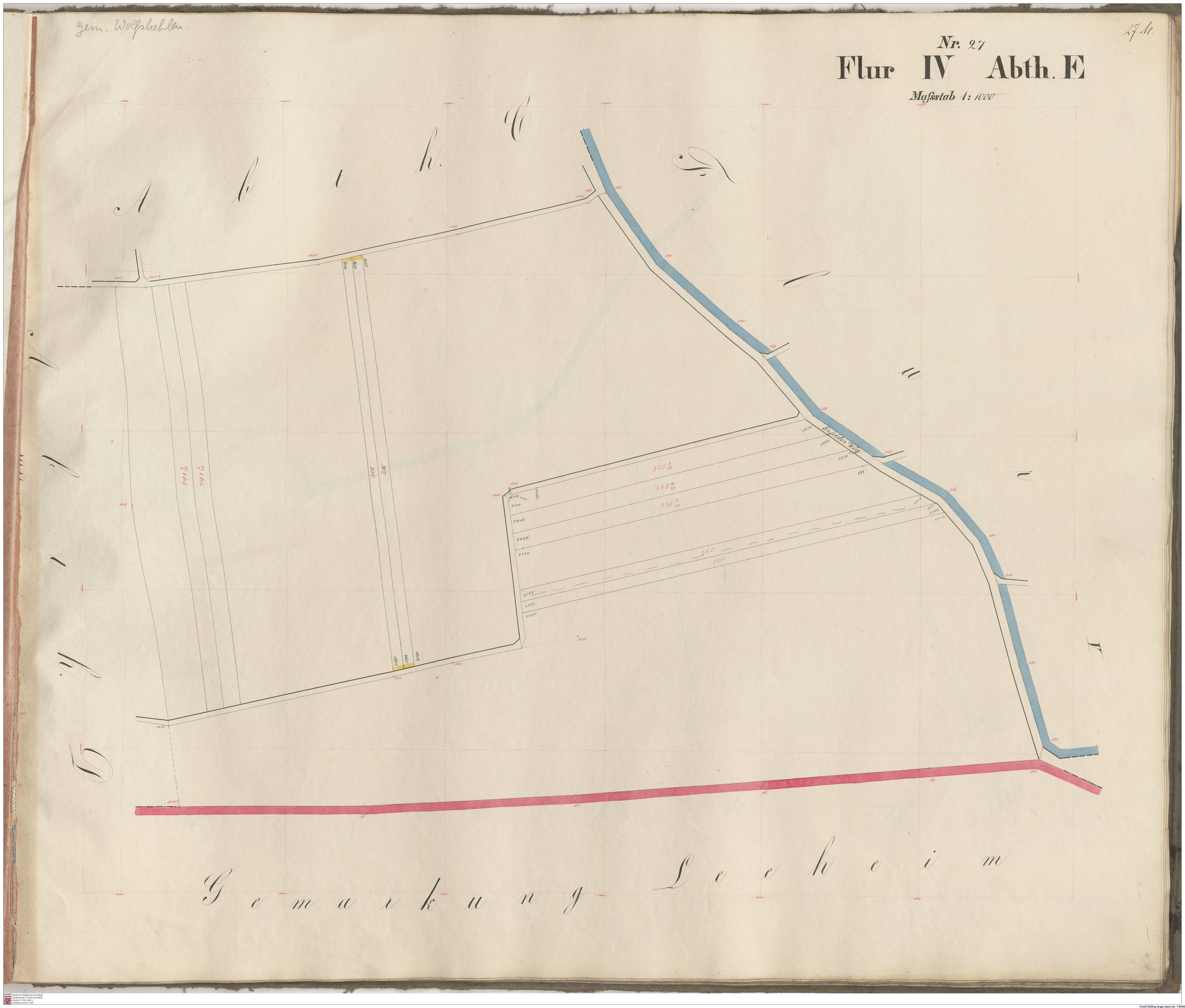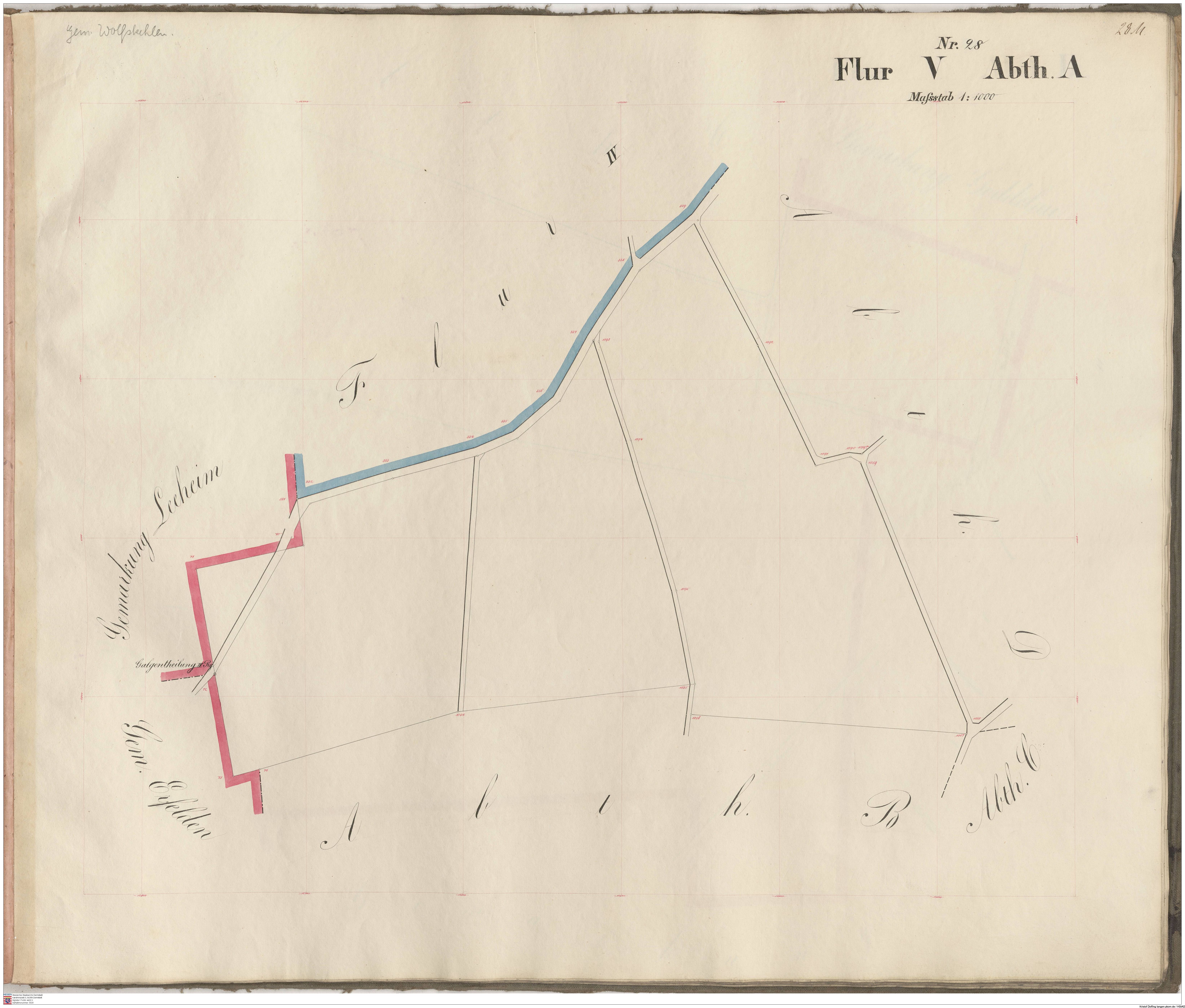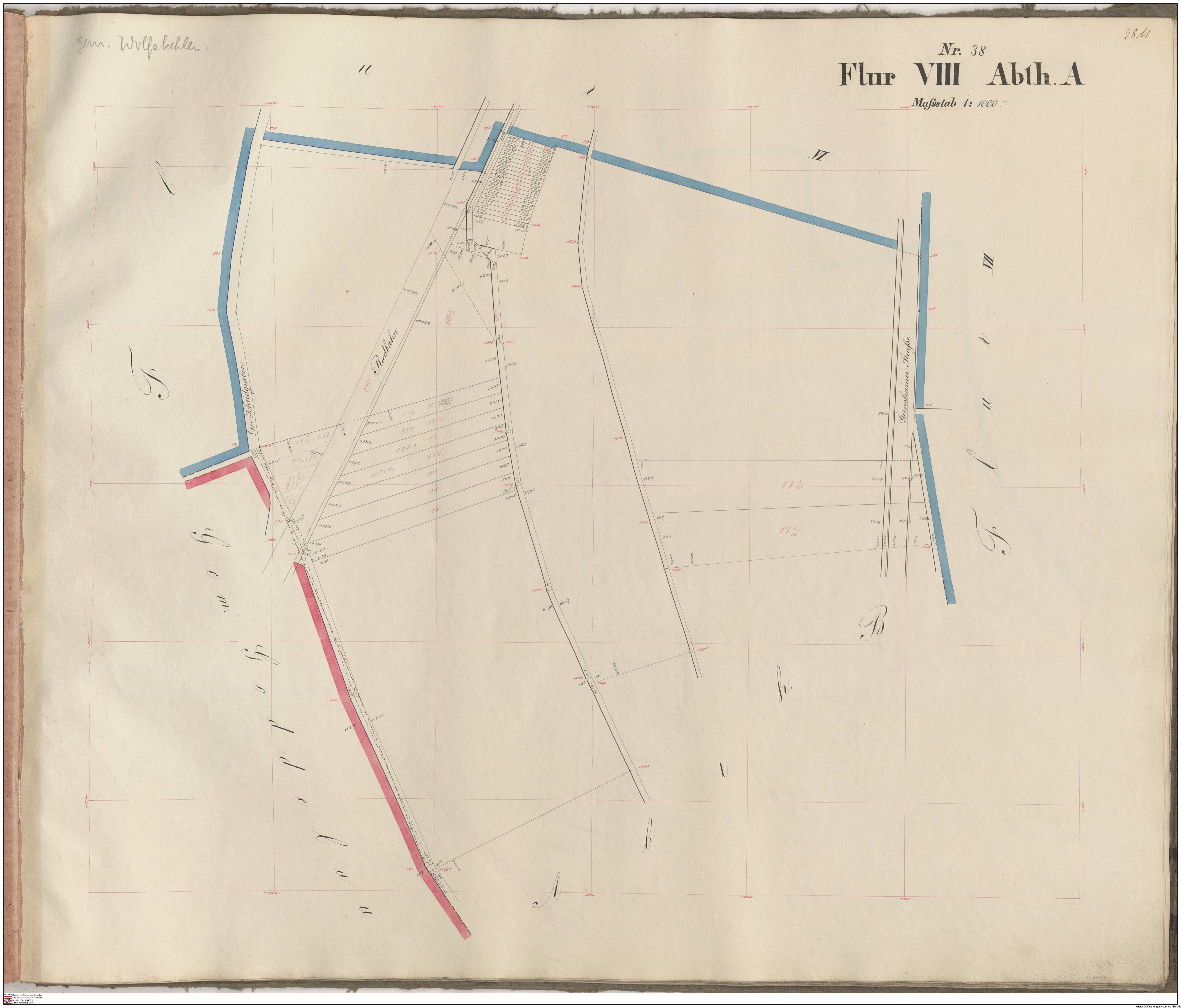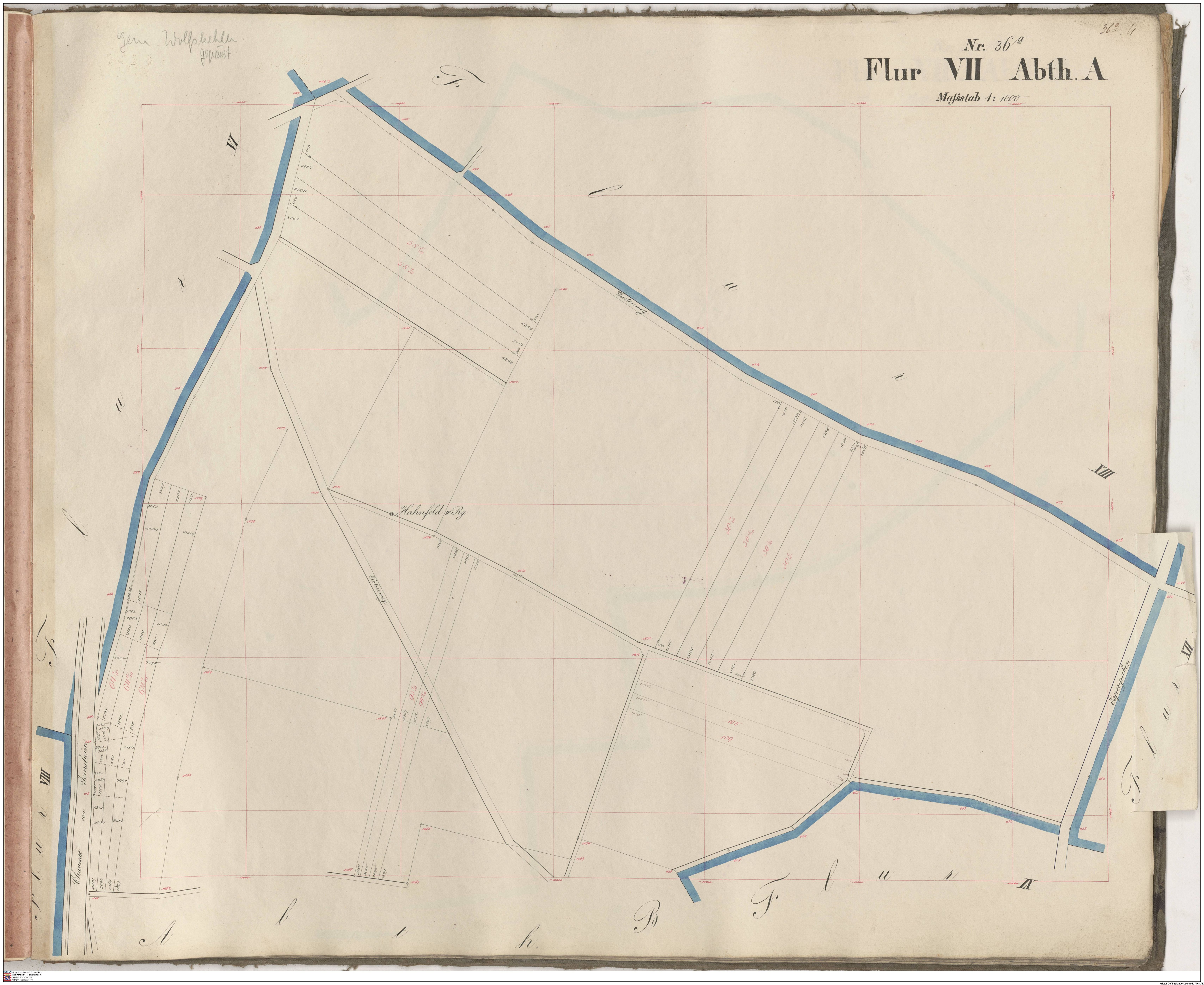 HStAD P 4 Nr. 3634: Parzellenkarten der Gemarkung Gross-Gerau 1852-1859, Flur 16, Abt A bis Flur 29