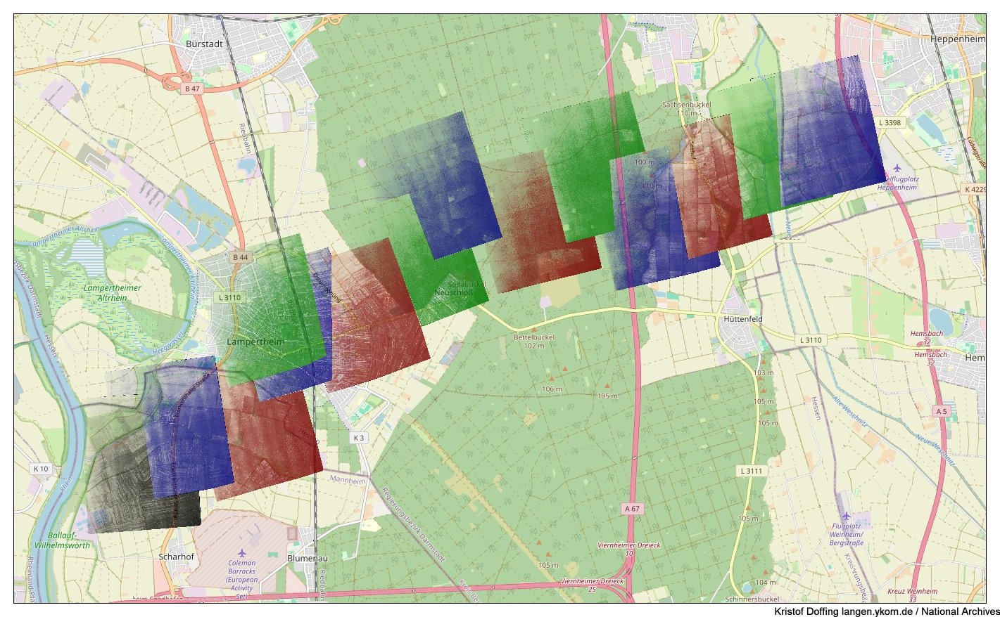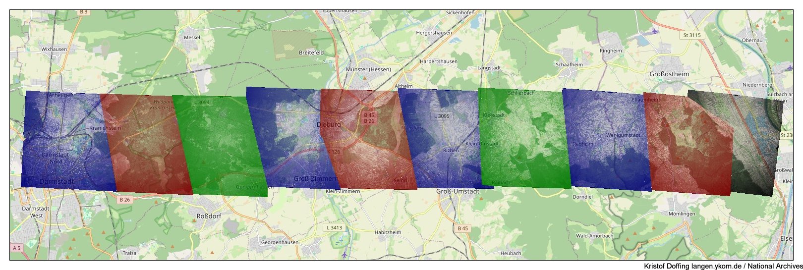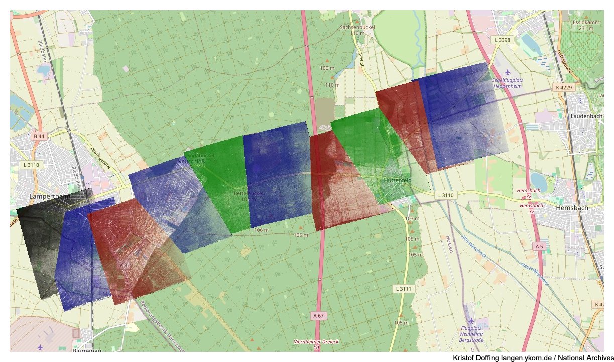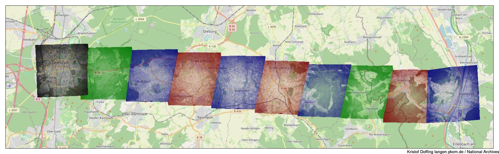 National Archives: Luftbilder vom Odenwald in Süd-Nord-Richtung vom 7.10.1944