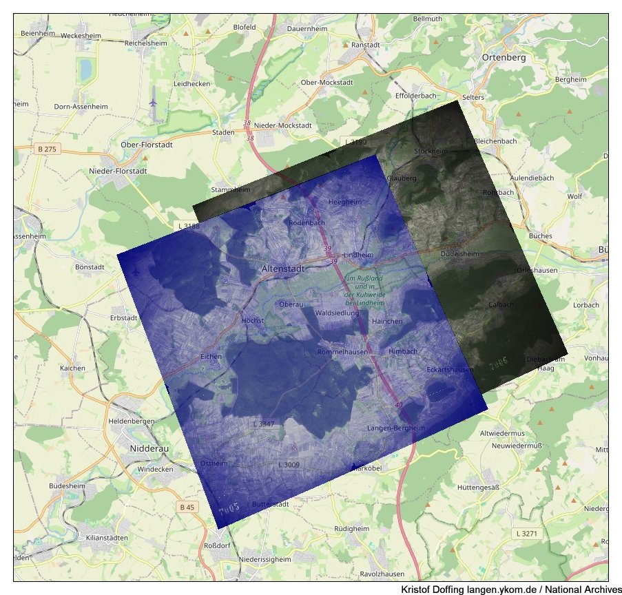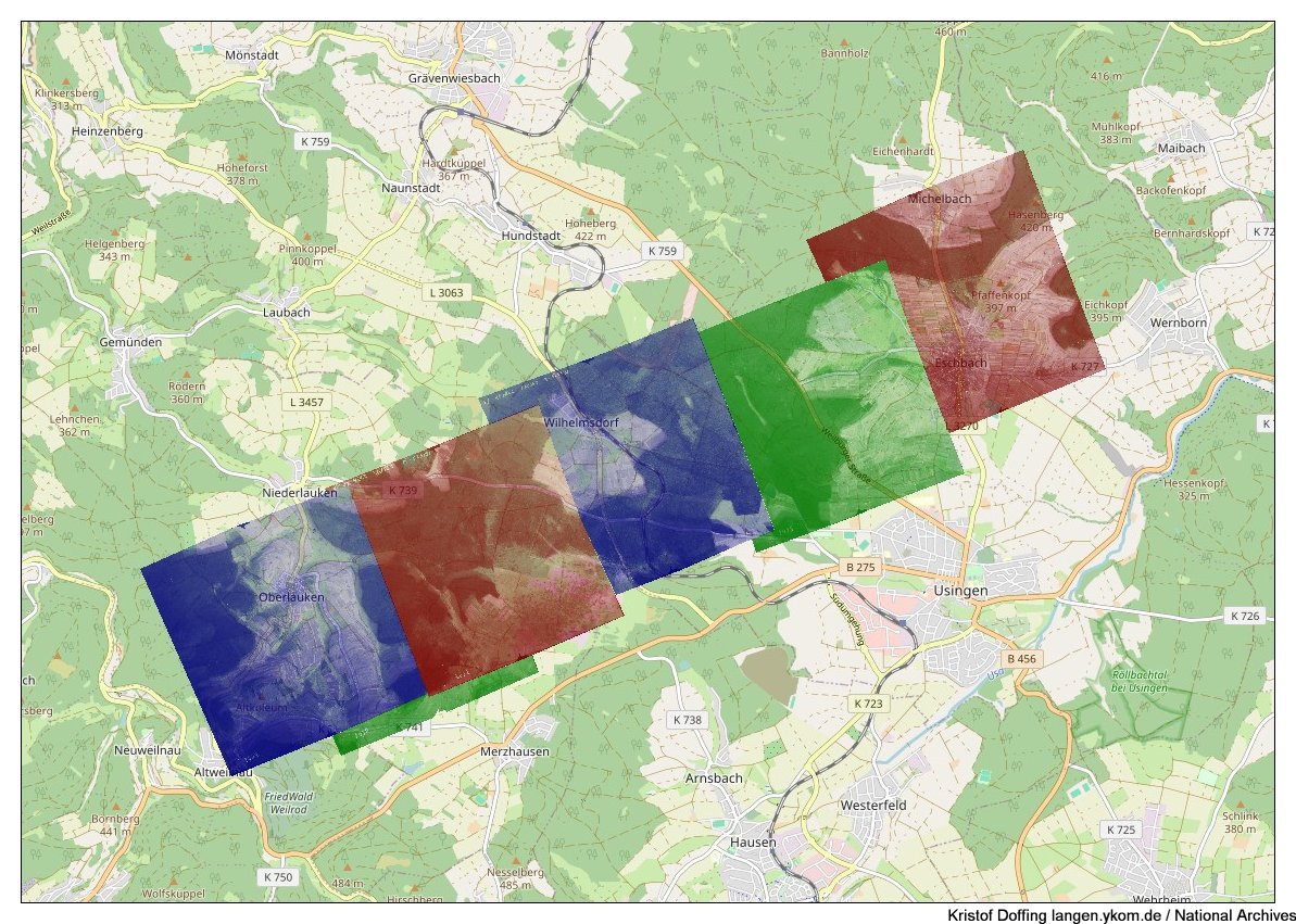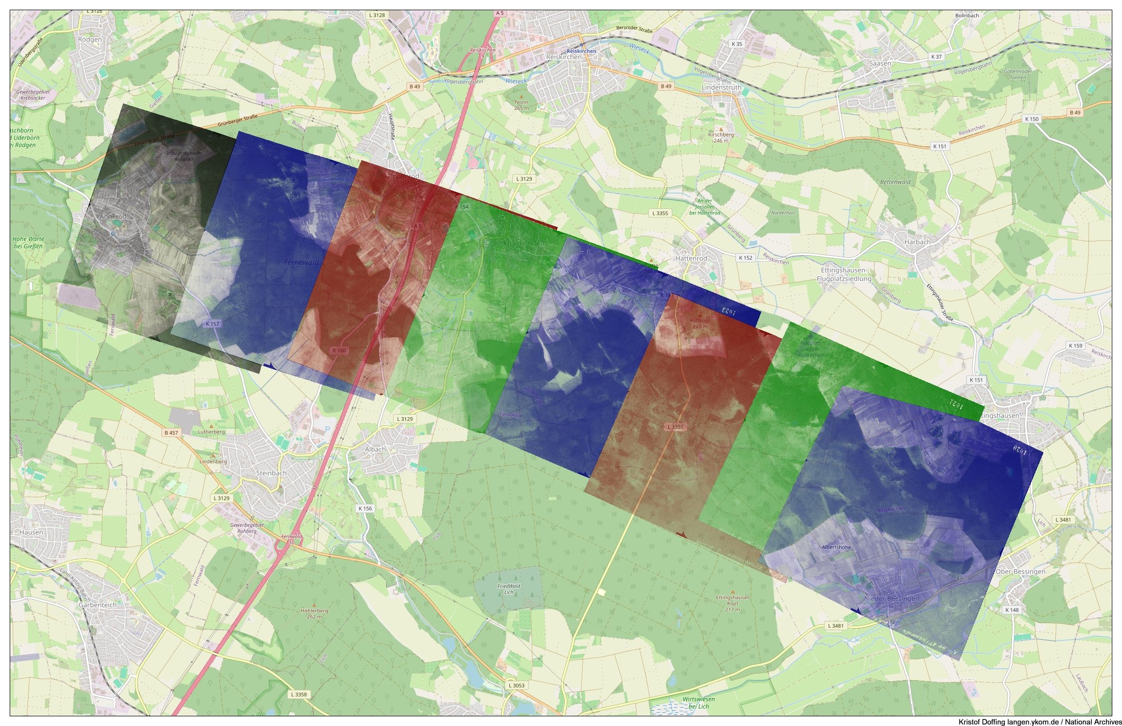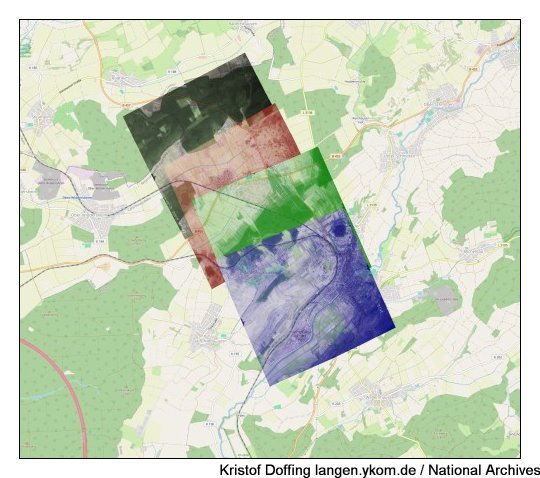 National Archives: Luftbilder vom Odenwald in Süd-Nord-Richtung vom 7.10.1944