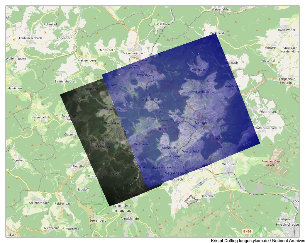National Archives: Aerial View Of The Bomb Damaged Railroad Yards At Wetzlar, Germany. 9 May 1945. (Blickrichtung auf einem Bild von 1953 )