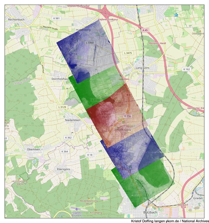 Nieder-Bessingen, Ettingshausem Einsatzhafen Ettingshausen, Harbach, Saasen, Lindenstruth, Reiskirchen, Burkhardsfelden, Steinbach, Oppenrod, Großen-Busek, Alten-Busek, Rödgen, Annerod, Flughafen Giessen, Giessen, Wieseck, Hüttenberg, Niederkleen, Oberkleen, Lang-Göns, Kirch-Göns, Flugplatz bei Kirch-Göns, Pohl-Göns, Ebersgöns