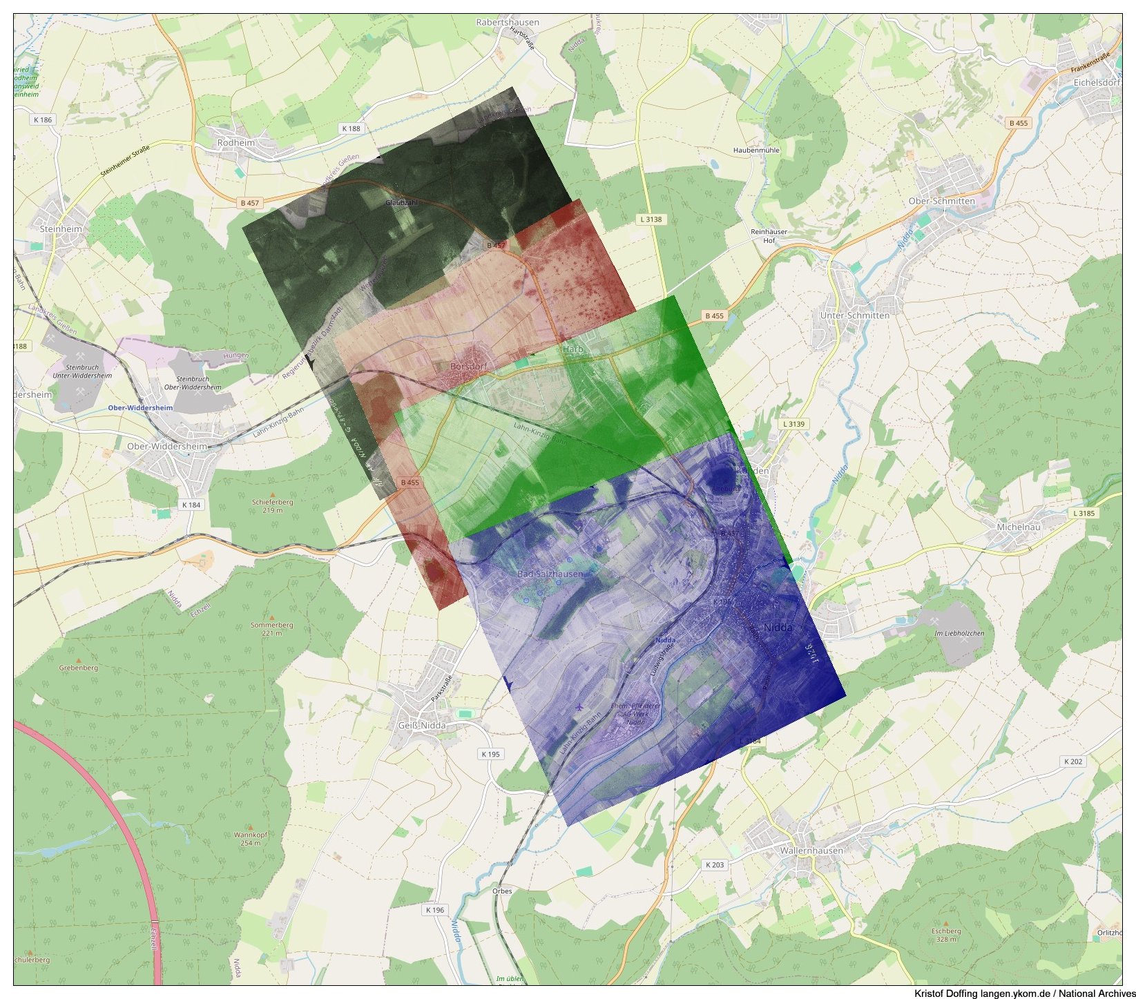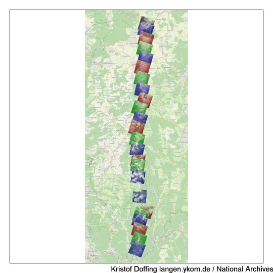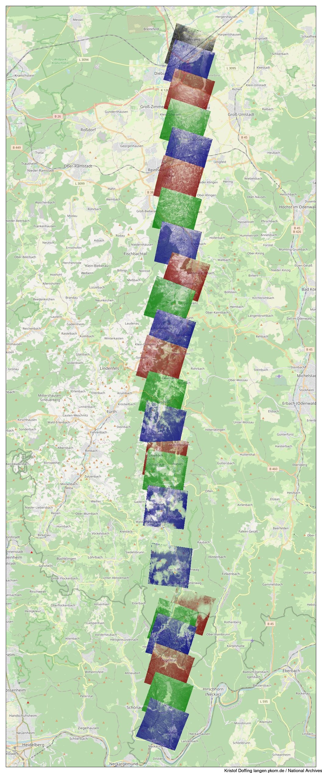 (#) "Spot Number D6104 Sortie US7-3488": Neckarsteinach, Darsberg, Grein, Langenthal, Hessesbach, Brombach, Flockenbusch, Korsika, Unter-Schönmattenwag, Ober-Schönmattenwag, Straßburg, Wald-Michelbach, Aschbach, Hartenrod, Affolterbach, Kocherbach, Wahlen, Scharbach, Litzelbach, Gras-Ellenbach, Hammelbach, Weschnitz, Ober-Osern, Erzbach, Gumpen, Unter-Ostern, Reichelsheim, Bockenrod, Beerfurth, Fränkisch-Crumbach, Nieder-Kainsbach, Wersau, Brensbach, Hippelsbach, Hundertmorgen, Ueberau, Reinheim, Habitzheim, Klein-Zimmern, Semd, Dieburg, Altheim, Münster