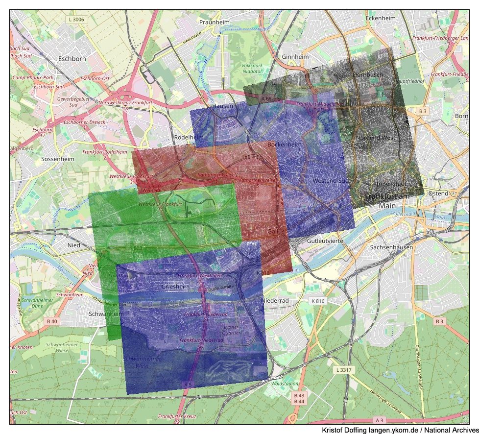 Luftbilder der US Air Force (genau genommen der "USAAF") sowie Bilder der Bombenschäden aus der Zeit des 2. Weltkriegs, überwiegend aus dem National Archives Catalog sowie den "San Diego Air & Space Museum Archives"