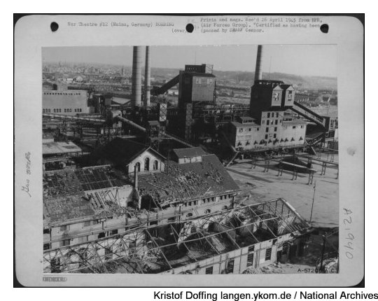 National Archives: Aerial View Of The Adler-Werke Plant At Frankfurt, Germany, Showing Damage Due To Allied Air Attacks Blickrichtung, in der Mitte verm. Alfred Teves GmbH