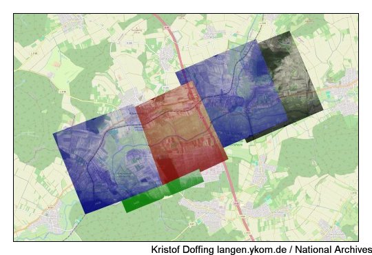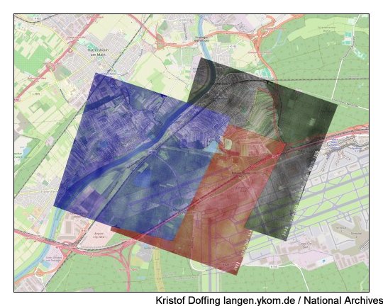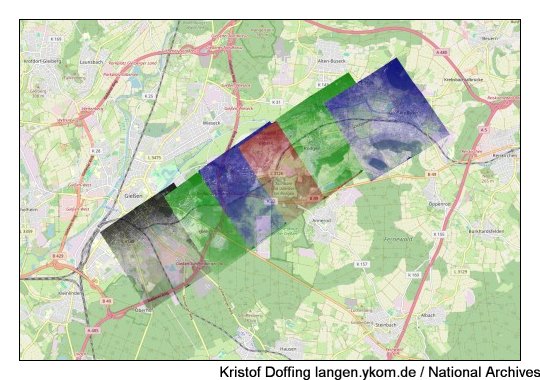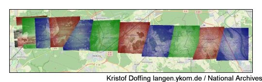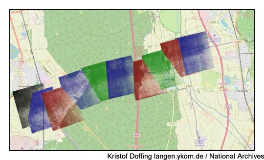 Luftbilder vom 23.3.1945 "Spot Number D1802 Sortie US34-3631", Quelle: National Archives. Diese Serien bilden je die "linke Seite" zu den Aufnahmen von "D1803".